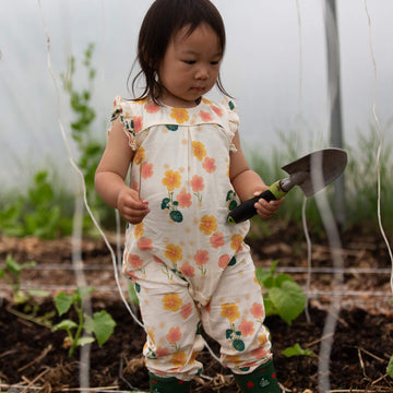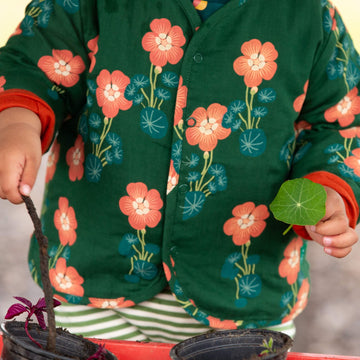 Our signature print for spring inspired by edible nasturtiums, made for girls and boys to wear.