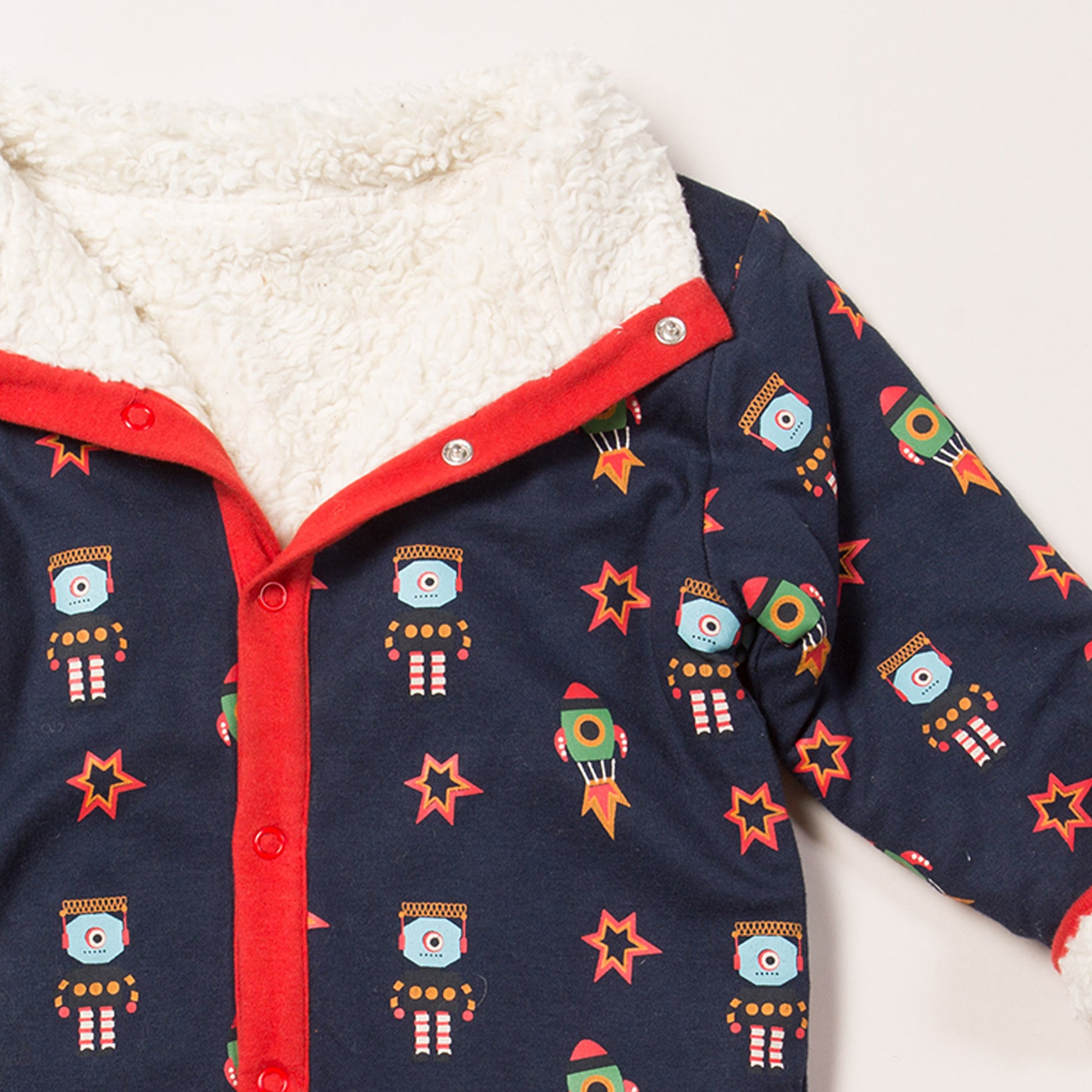 100% Organic & Fairtrade Brushed Cotton A lovely and cosy jacket to keep little ones warm when they're out adventuring on cold and windy days. It's reversible, and comes with snuggly organic sherp…