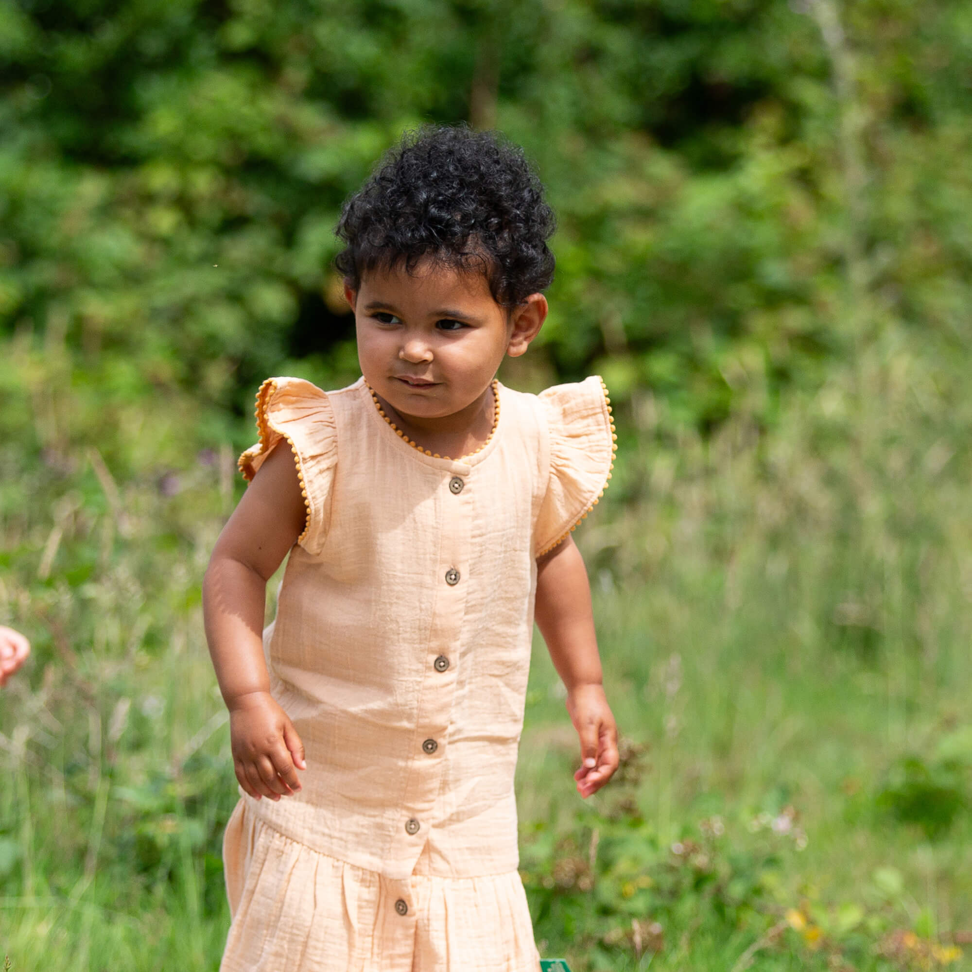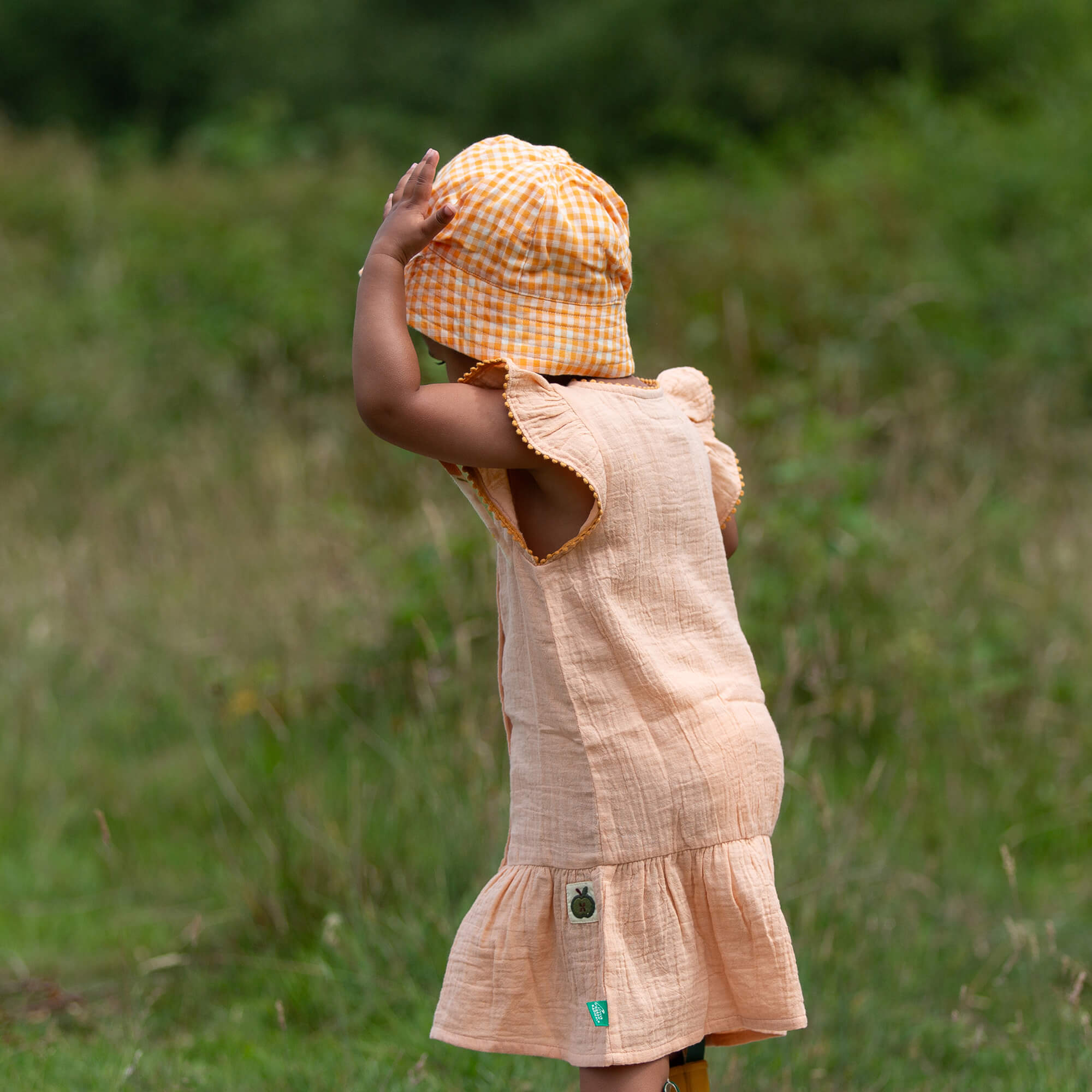 Ready for fun in the sun! This summer dress is super comfy, has a dropped waist with lots of room for movement as they play. Comes with natural coconut buttons and a lovely little pom pom frill!
