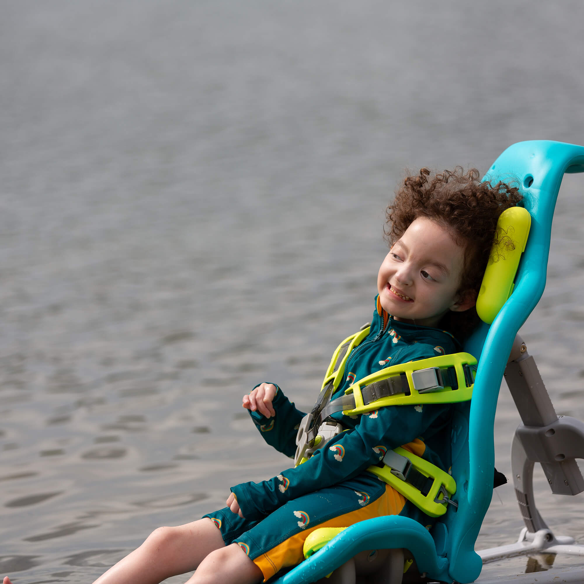 More about our Teal Rainbows UPF 50 Recycled Adaptive Sun Safe Sunsuit