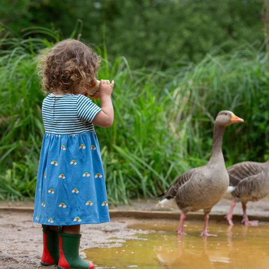 This dress is easy peasy to put on and so comfy, your little one will want to wear it every day! It's made using long-lasting organic interlock cotton, which is lovely and thick and very soft to touch. It sits just above the knee and has a wide skirt to give lots of room for movement as they play, and a fitted top with short sleeves to protect from the sun. This is a lovely comfy style for babies, so we've included some nappy cover pants for hot days when they're learning to crawl, climb and walk (up to 24m). Wear with our leggings on cooler days.