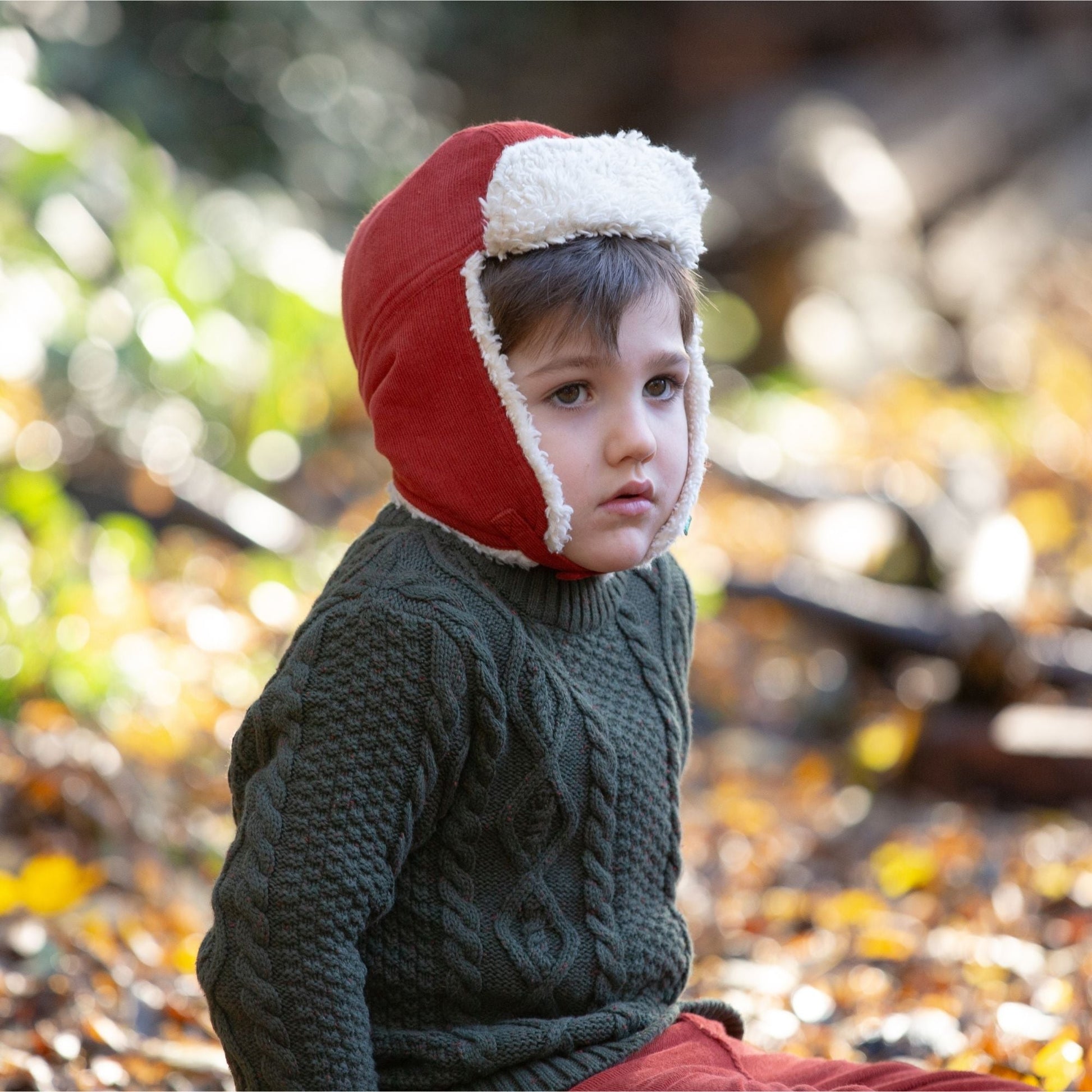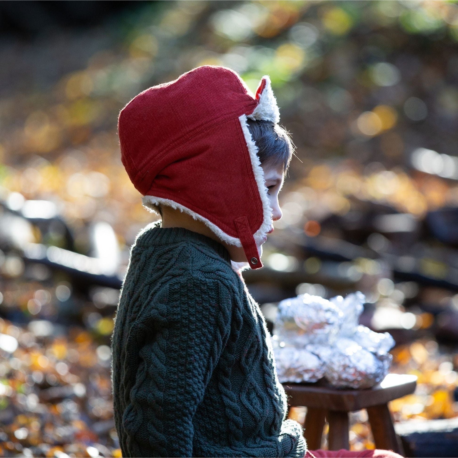New style cosy hat for boys and girls, fully lined in soft organic sherpa. They come with a handy adjustable chin strap so it'll stay on however much fun they're having, plus we've made this style extra long at the back so it's super snug. Pair with our matching winter sherpa styles for a lovely set or beautiful gift.
