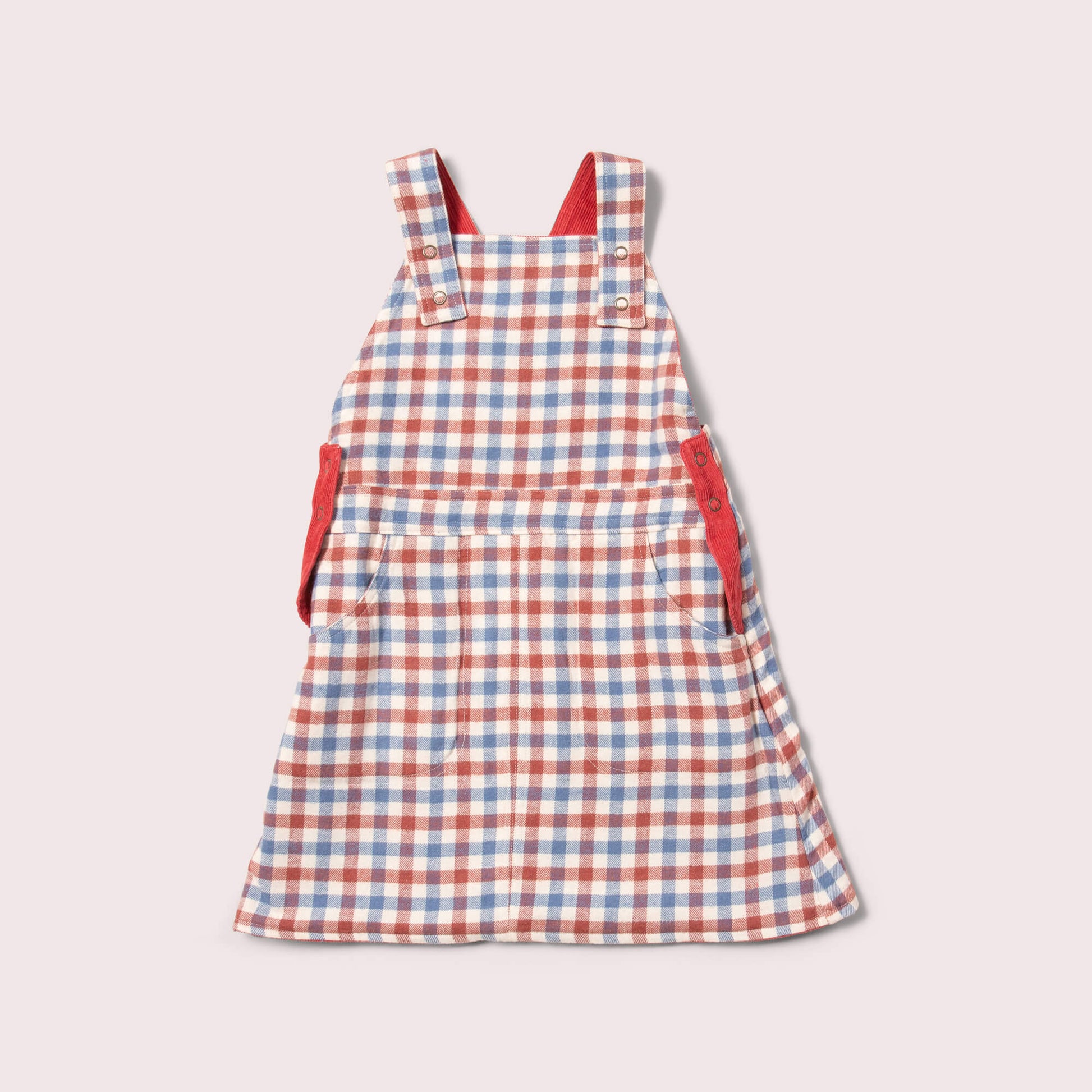 Beautiful new fully reversible pinafore, designed to wear year round. Twice as nice, you'll get two styles in one with this dress! Layer with a cosy knit, leggings and warm jackets in winter, or pair with soft organic tees for spring.