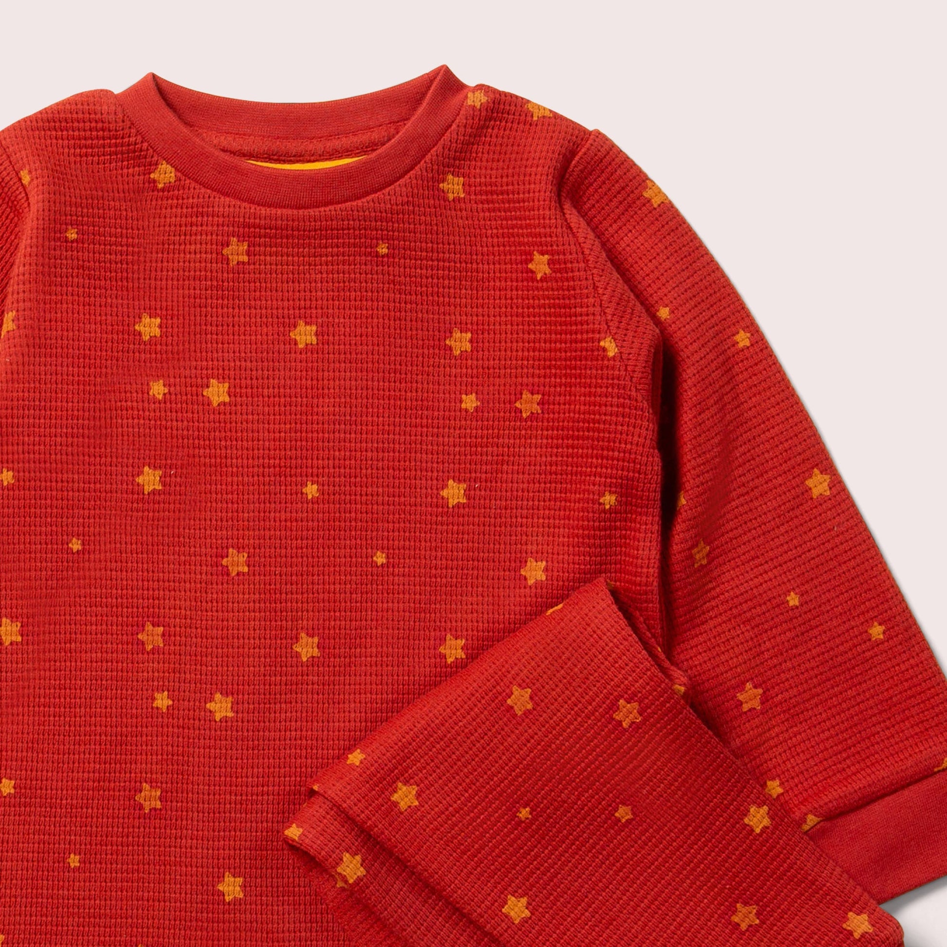 Super comfy PJs, made from beautifully soft and cosy organic waffle cotton to keep them snug on cold nights covered in a star print that little ones will love. The unisex style and the long-lasting, fantastic quality interlock fabric means these pyjamas can be worn again and again, and then be passed along to friends or siblings once they're outgrown.