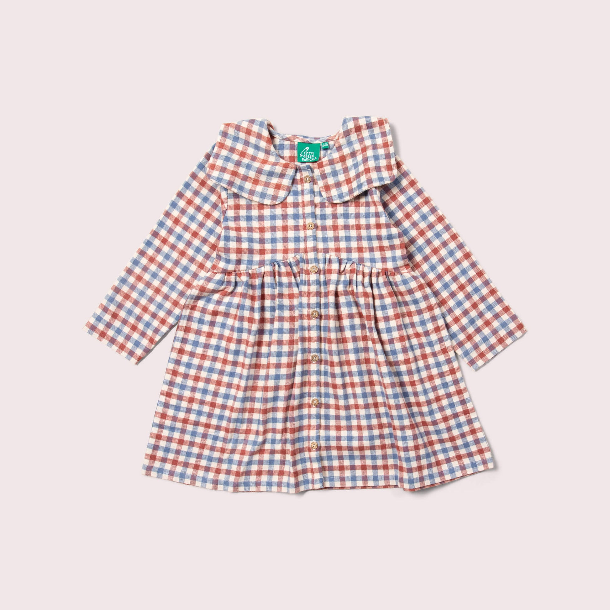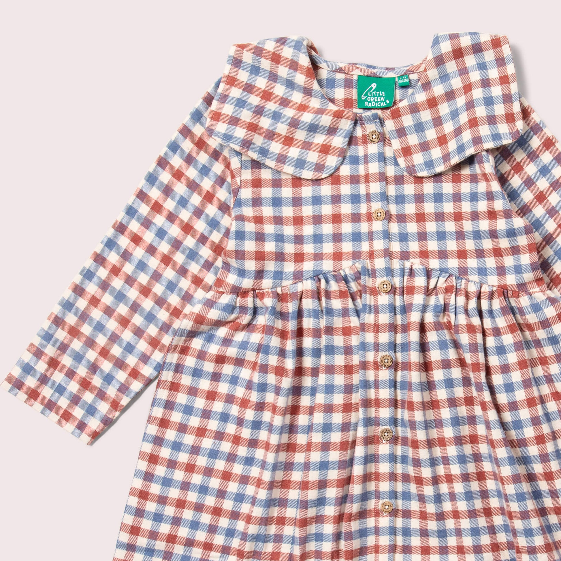 Perfect for parties or play, this comfy, classic dress comes with a beautiful statement colour and colourful print, made for celebrations! - 100% Organic & Fairtrade Brushed Cotton - Collar deta…