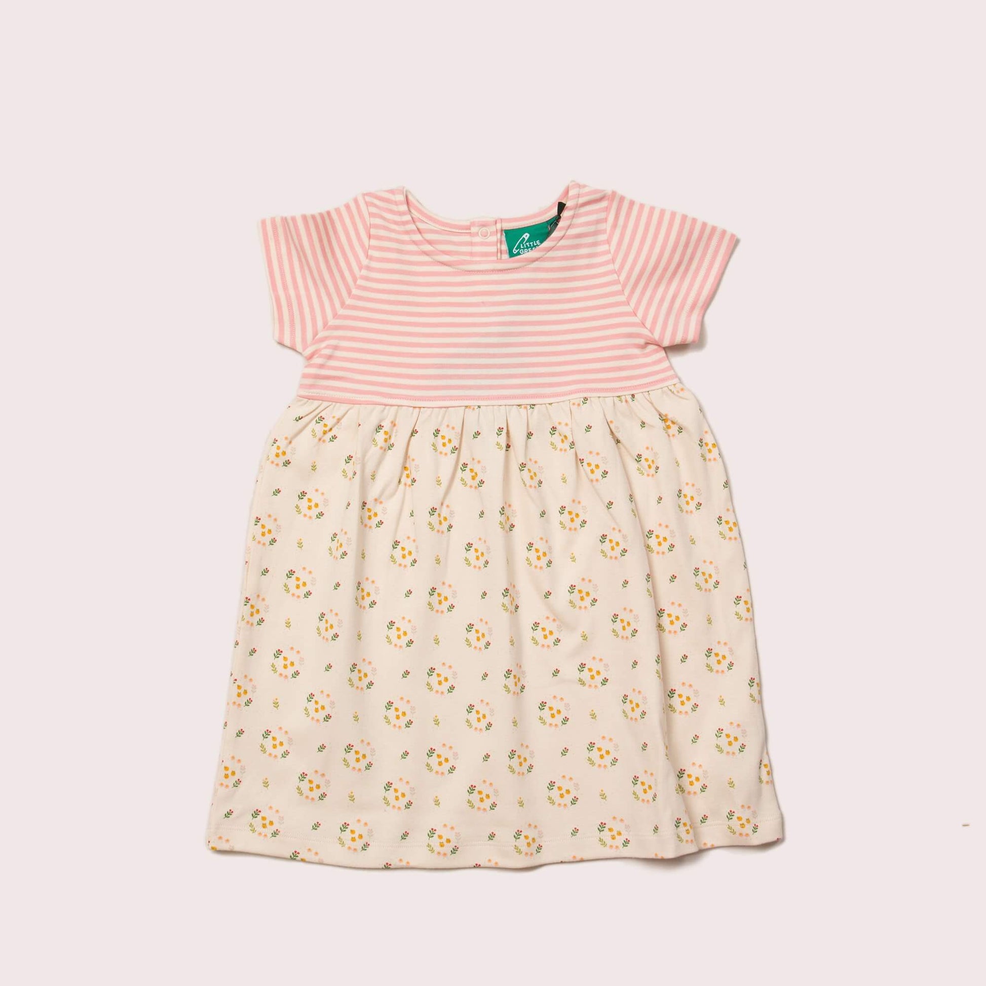 This dress is easy peasy to put on and so comfy, your little one will want to wear it every day! It's made using long-lasting organic interlock cotton, which is lovely and thick and very soft to touch. It sits just above the knee and has a wide skirt to give lots of room for movement as they play, and a fitted top with short sleeves to protect from the sun. This is a lovely comfy style for babies, so we've included some nappy cover pants for hot days when they're learning to crawl or walk. Wear with our leggings on cooler days.
