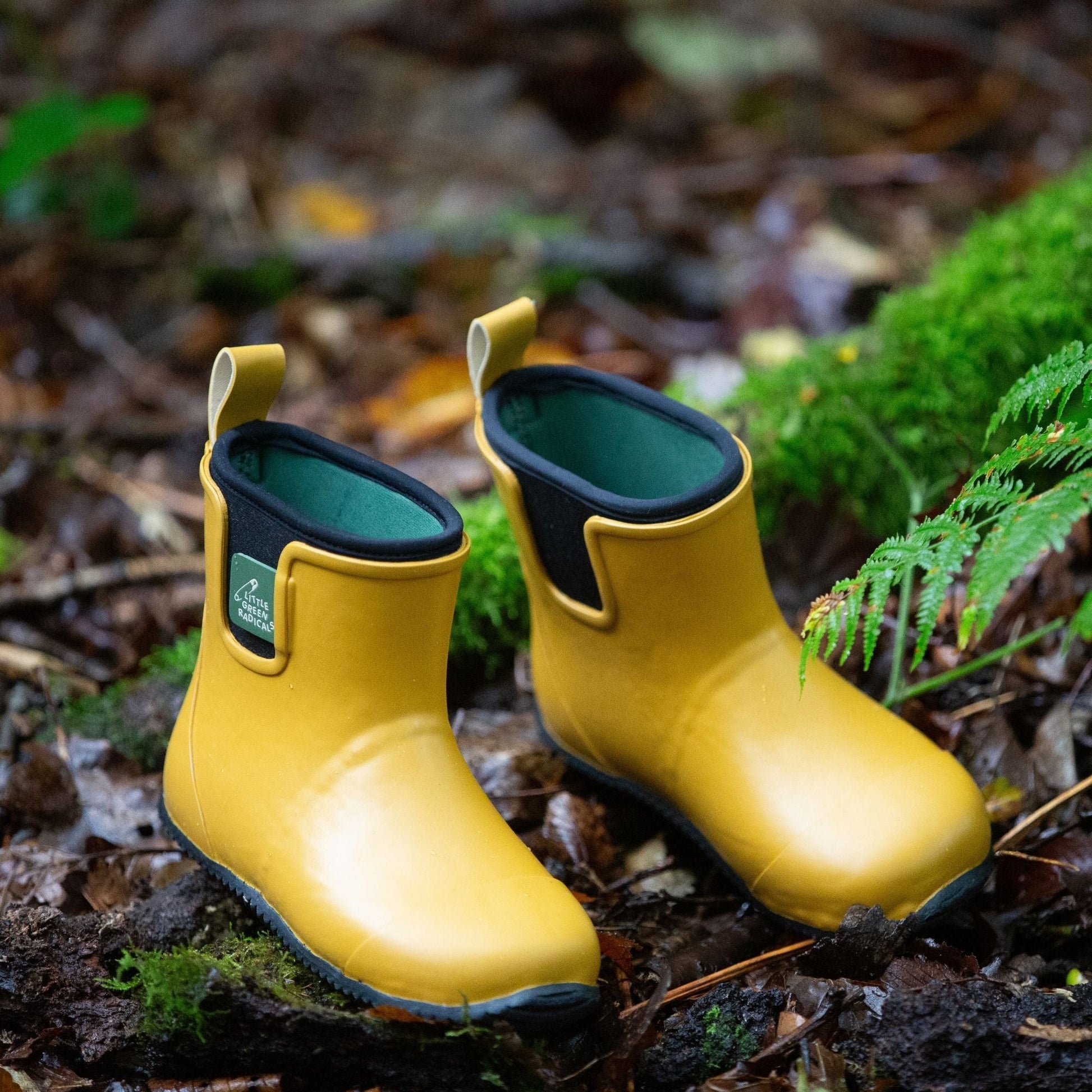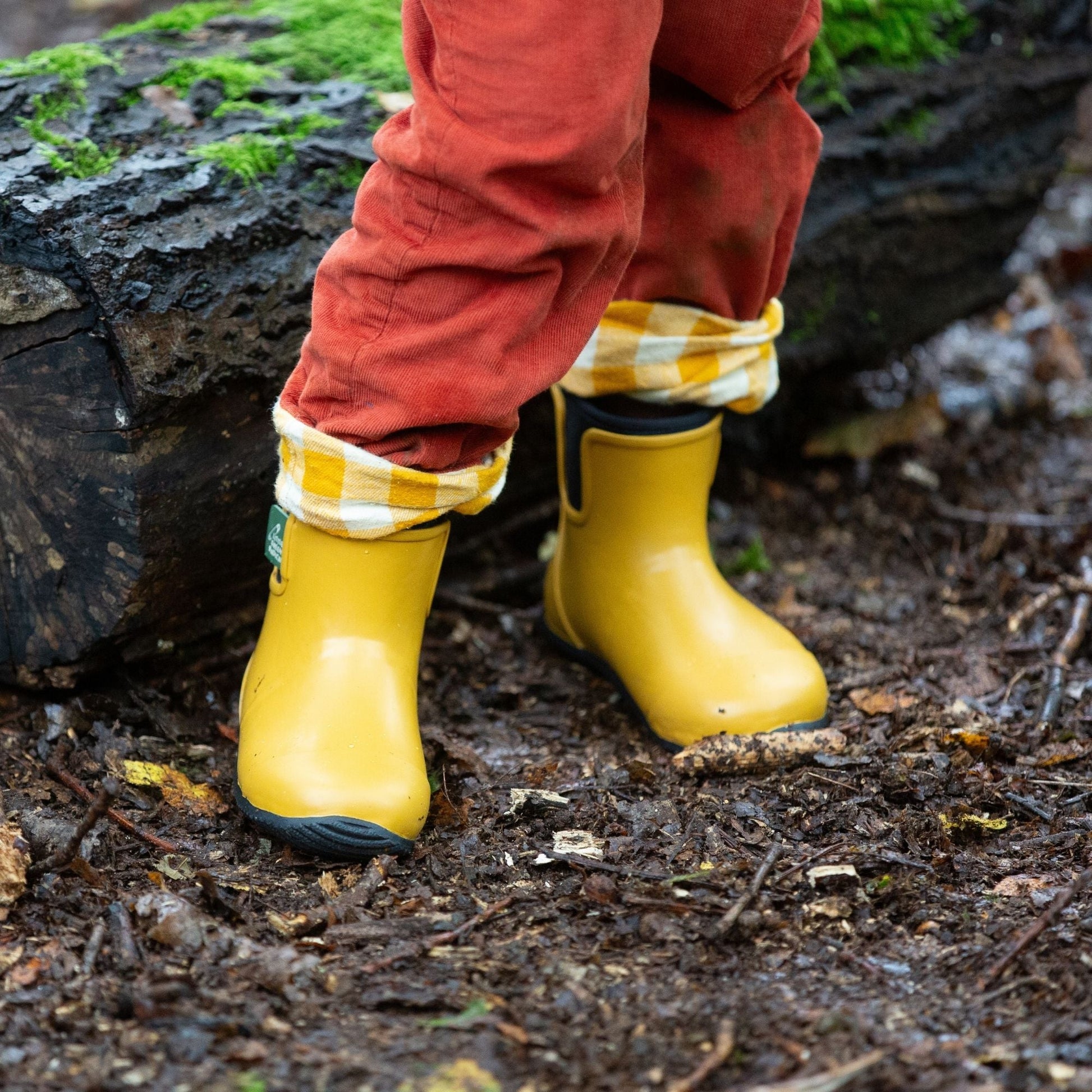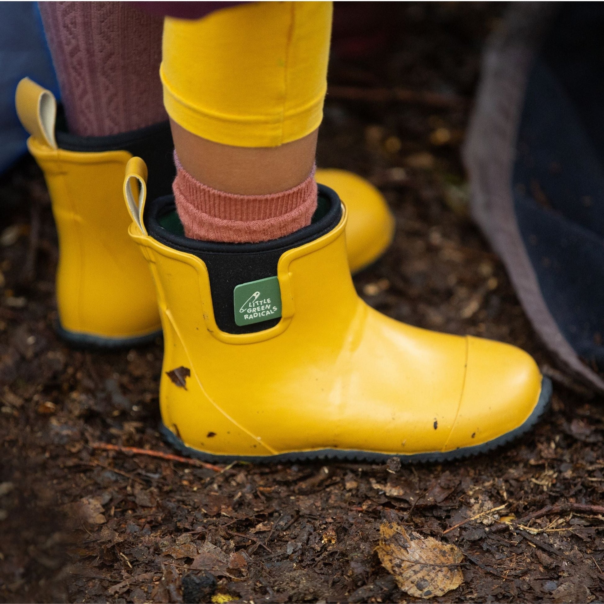 You've not seen boots like this before! These are the world's first Fair Rubber natural waterproof boots for kids, and we're extremely proud to be launching this exceptional new product. This lined ankle boot is comfy enough to be worn year round, not just on wet weather days, so you'll get lots of use out of them. They've been designed to be put through the paces by Little Explorers and come with gripped soles for extra stability, are 100% waterproof and come with a warm, soft, breathable, insulated lining.