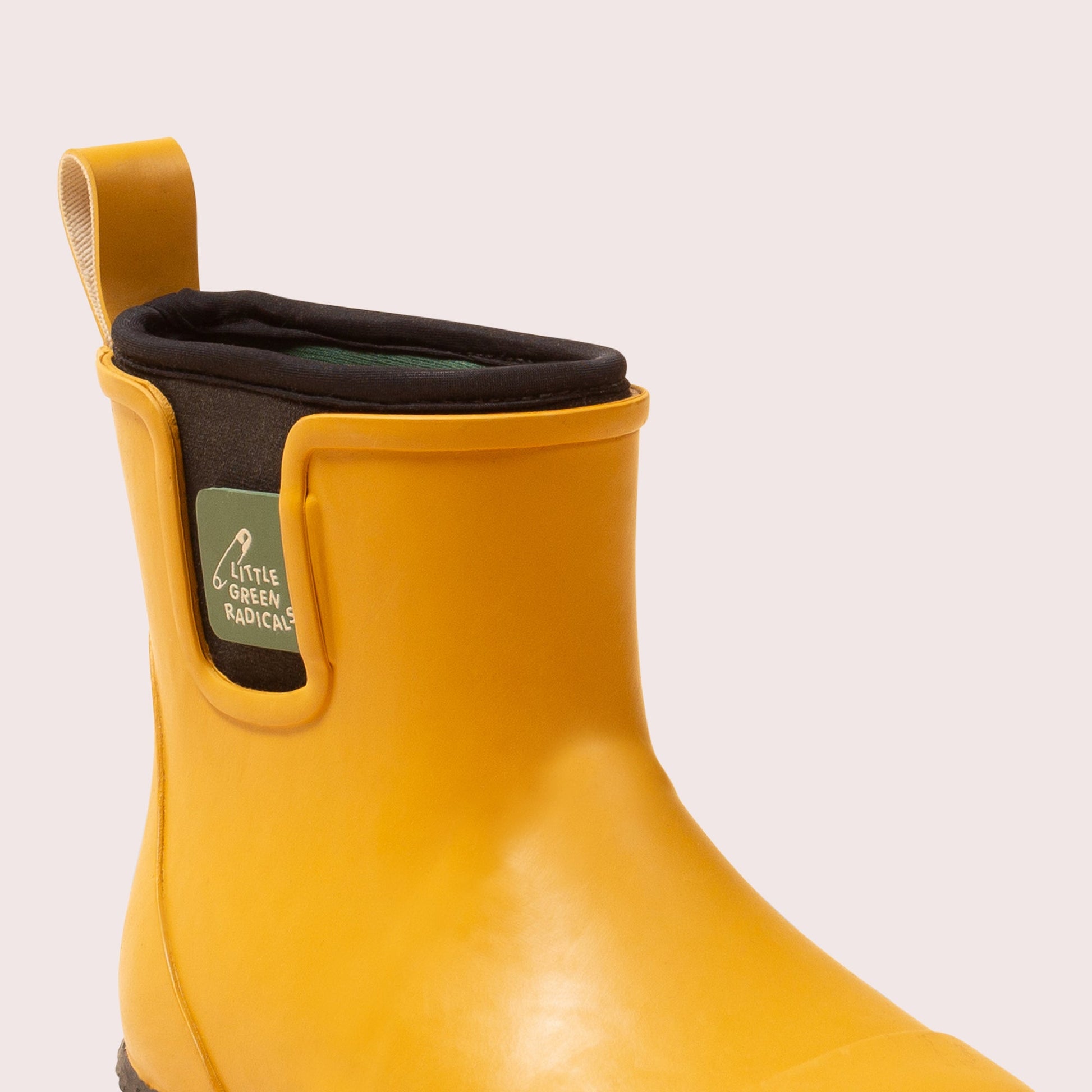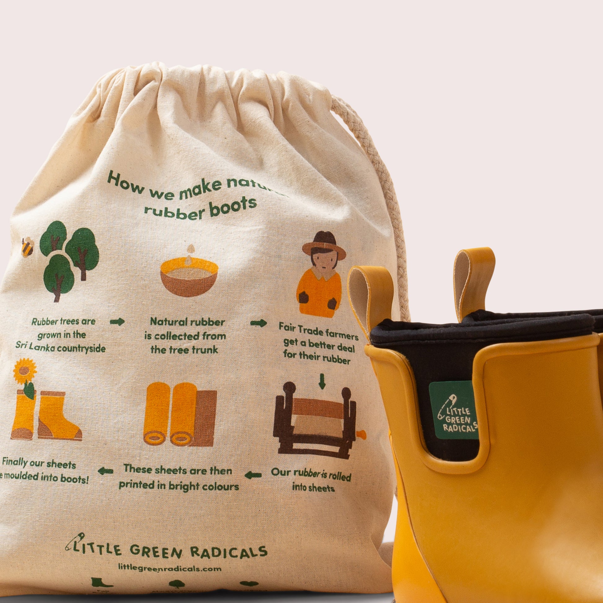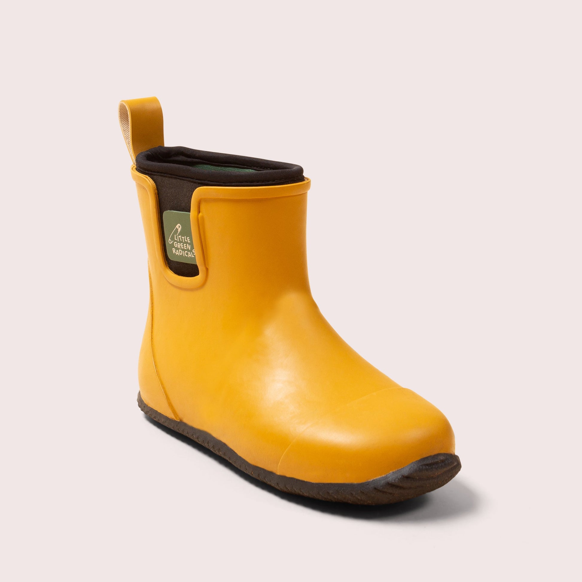You've not seen boots like this before! These are the world's first Fair Rubber natural waterproof boots for kids, and we're extremely proud to be launching this exceptional new product. This lined ankle boot is comfy enough to be worn year round, not just on wet weather days, so you'll get lots of use out of them. They've been designed to be put through the paces by Little Explorers and come with gripped soles for extra stability, are 100% waterproof and come with a warm, soft, breathable, insulated lining.