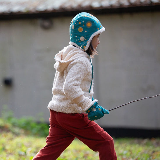 More about our Sun & The Stars Sherpa Lined Hat Cosy and snug, these fully lined organic sherpa hats come with handy ties to keep little ears warm. Pair with our matching winter sherpa styles for …