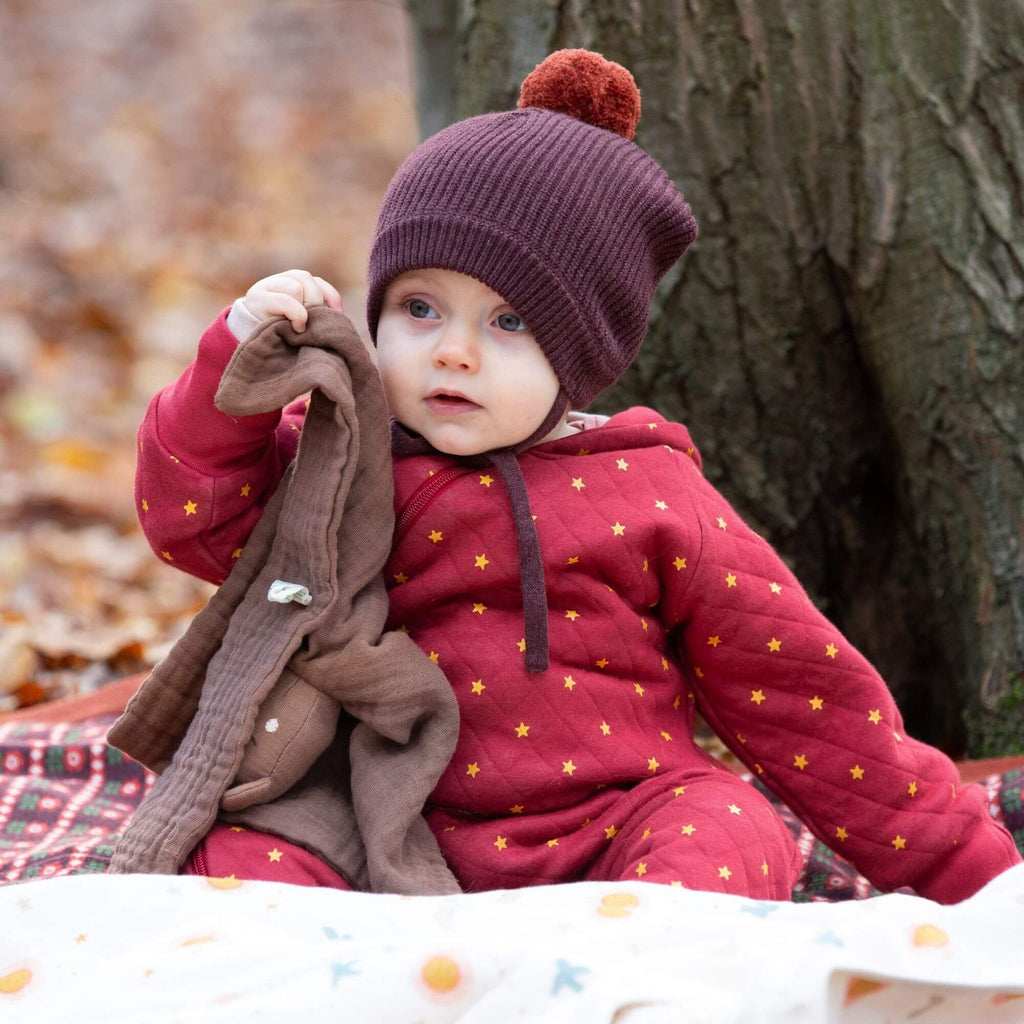 Cosy hats to keep them warm all winter long! Made from 100% organic true knit cotton, this hat will feel beautifully soft against their skin. They come with handy covers and ties to keep little ears warm, plus a fun pom pom on the top! Pair with our matching knitted styles.