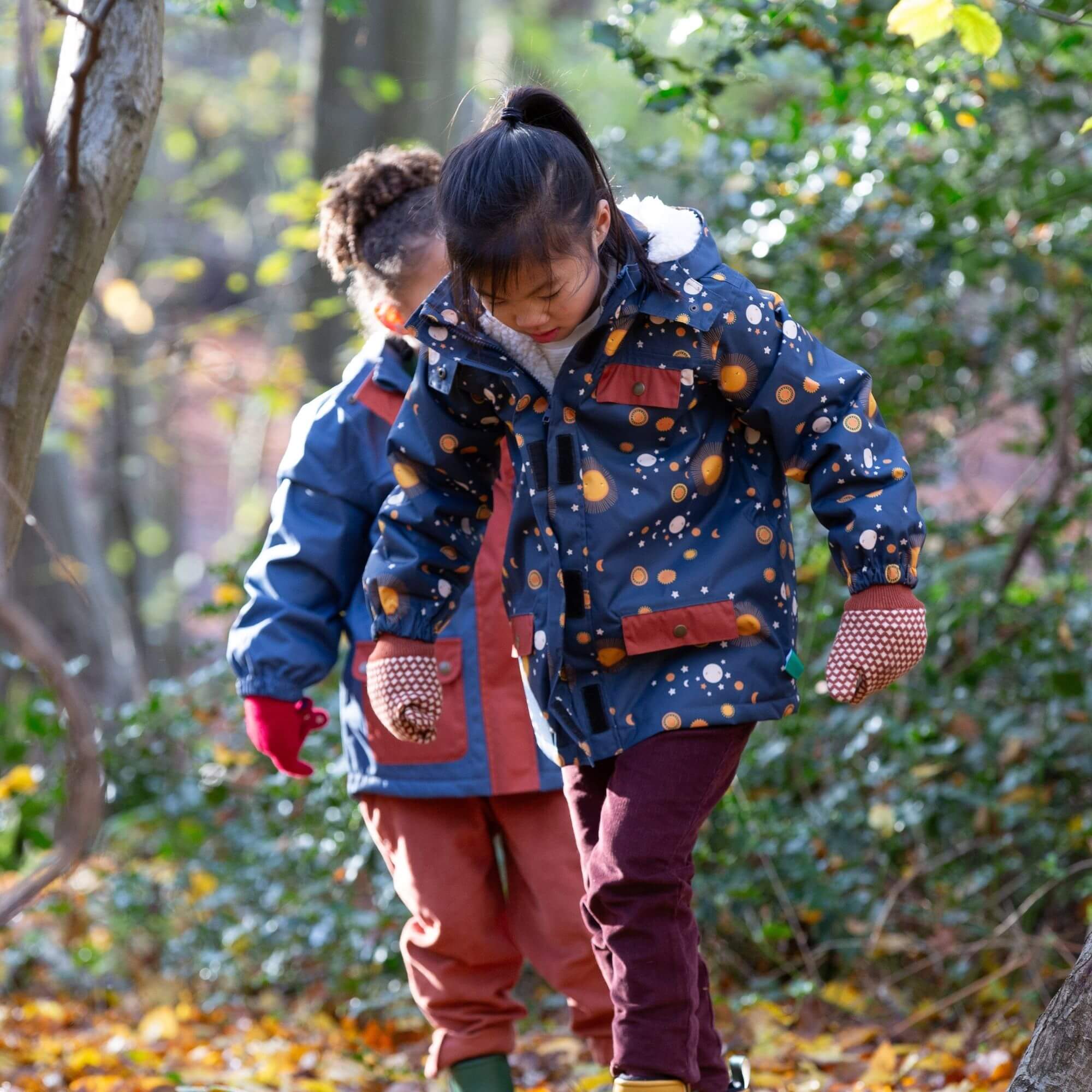 These cosy winter coats are made from a durable, 100% waterproof performance fabric that's been constructed using recycled plastic bottles! They'll keep little explorers warm all winter long, and have a fast drying inner layer to keep kids cosy on wet or snowy days. This style has an extra long back to keep little bottoms dry, plus patch pockets at the front to store all their winter accessories.