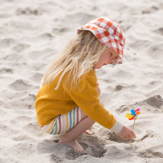 100% Organic Fairtrade Check & Poplin Stay out and play all day with this great reversible sunhat! This handy hat will help minimise sun exposure and protect your little one from UV rays. It can …