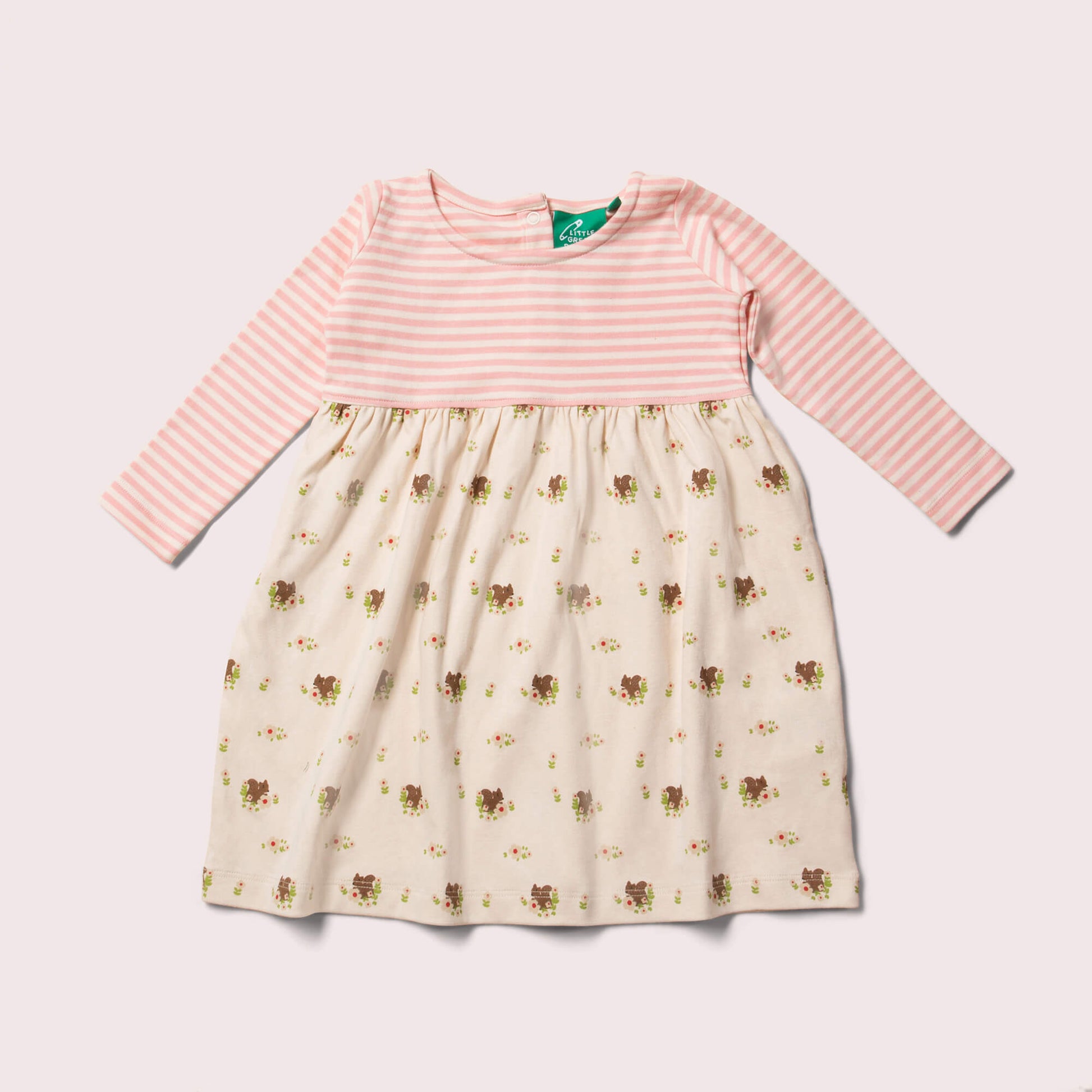100% Organic & Fairtrade Interlock Cotton This Autumn Squirrel Easy Peasy Long Sleeve Dress is easy peasy to put on and so comfy, your little one will want to wear it every day! It's made using l…