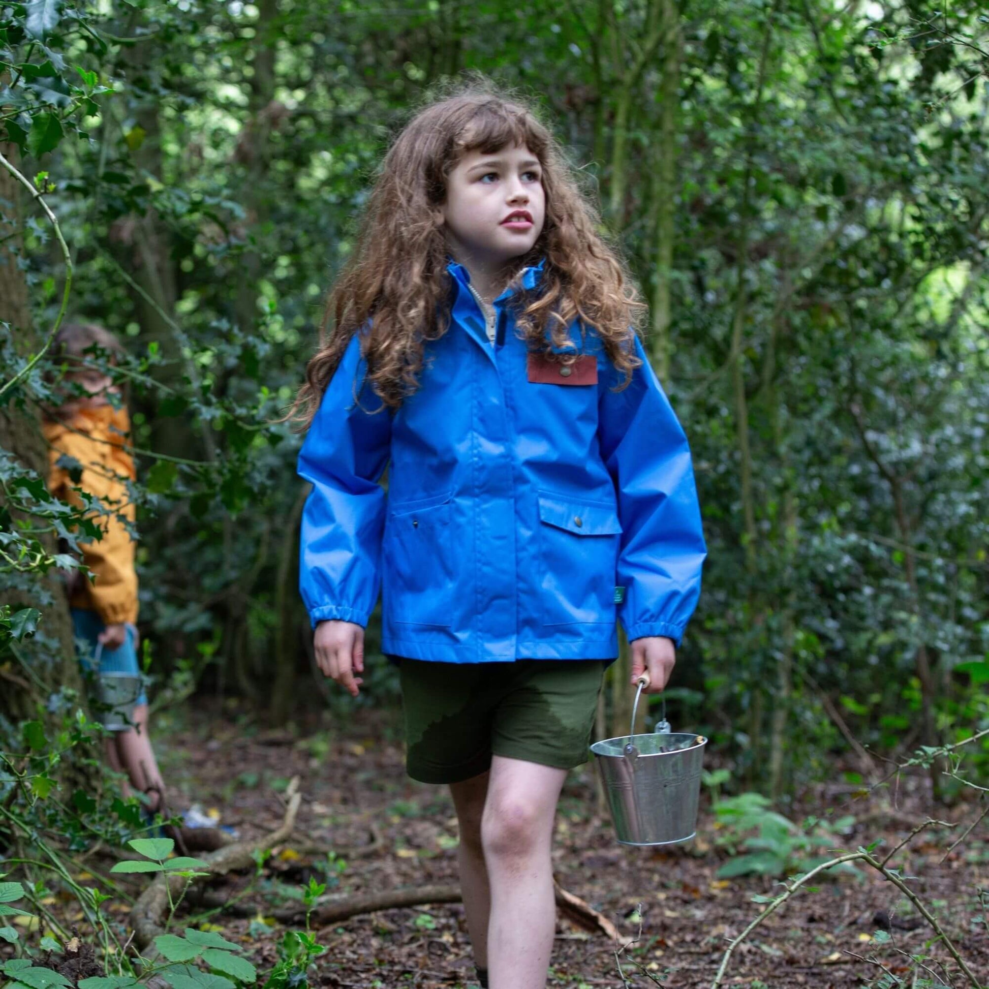 Comfy waterproof coat that can be worn year round. Comes with a breathable mesh lining so kids won't overheat in warm weather, and pair cosy layers in the cold. This style has an extra long back to keep little bottoms dry, plus patch pockets at the front.
