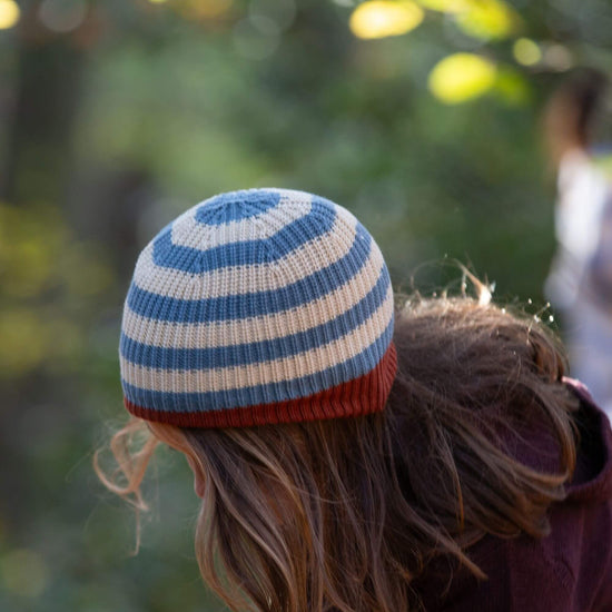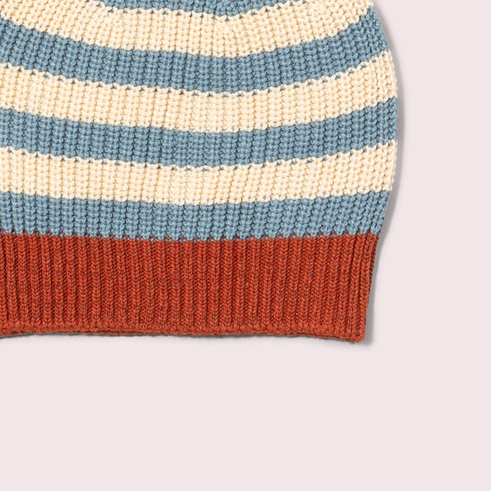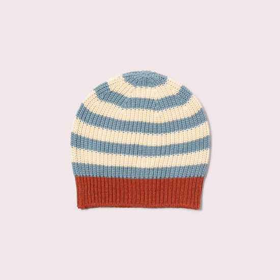 Blue Striped Knitted Beanie Hat
