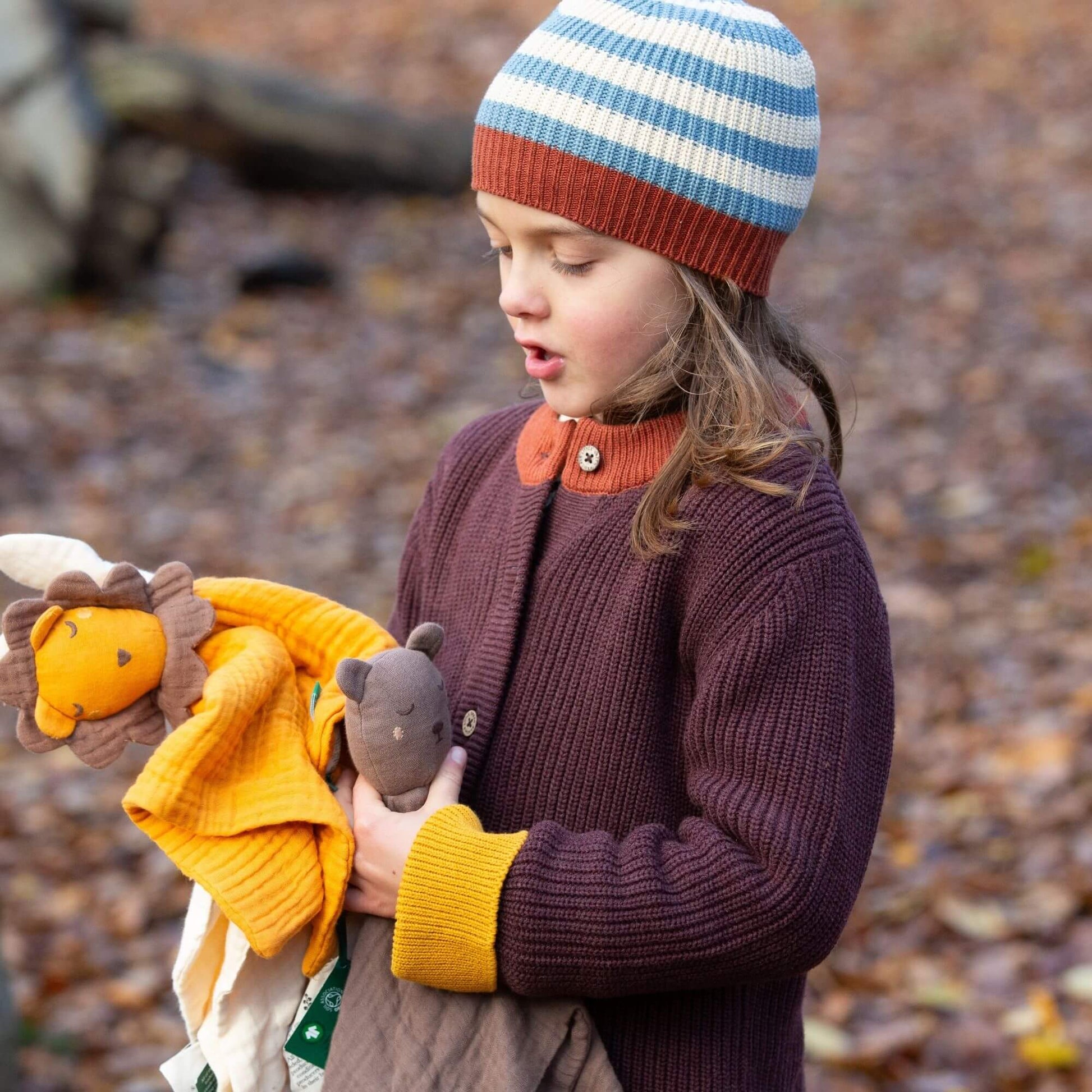 Keep them cosy on cold days with our snuggly knitted organic cotton beanie hat! Pair with a matching scarf for a lovely set or gift. Extra Details: Super soft knitted cotton with lots of stretch f…