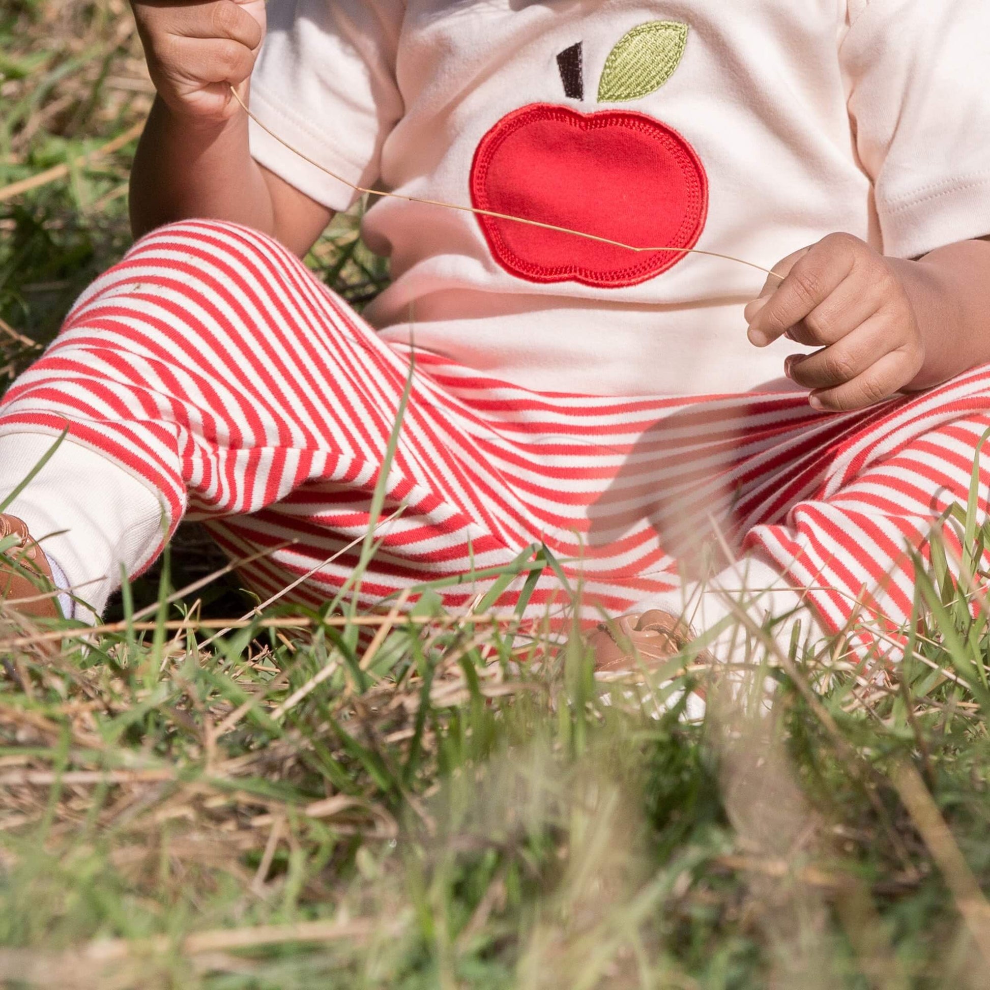 100% Organic & Fairtrade Interlock Cotton Take a bite! This super-soft tee comes with a bright red apple applique that your little one will love. This isn't your ordinary t-shirt fabric, our inter…