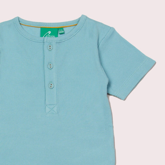 Corn Silk Blue Ribbed Short Sleeve Henley Top