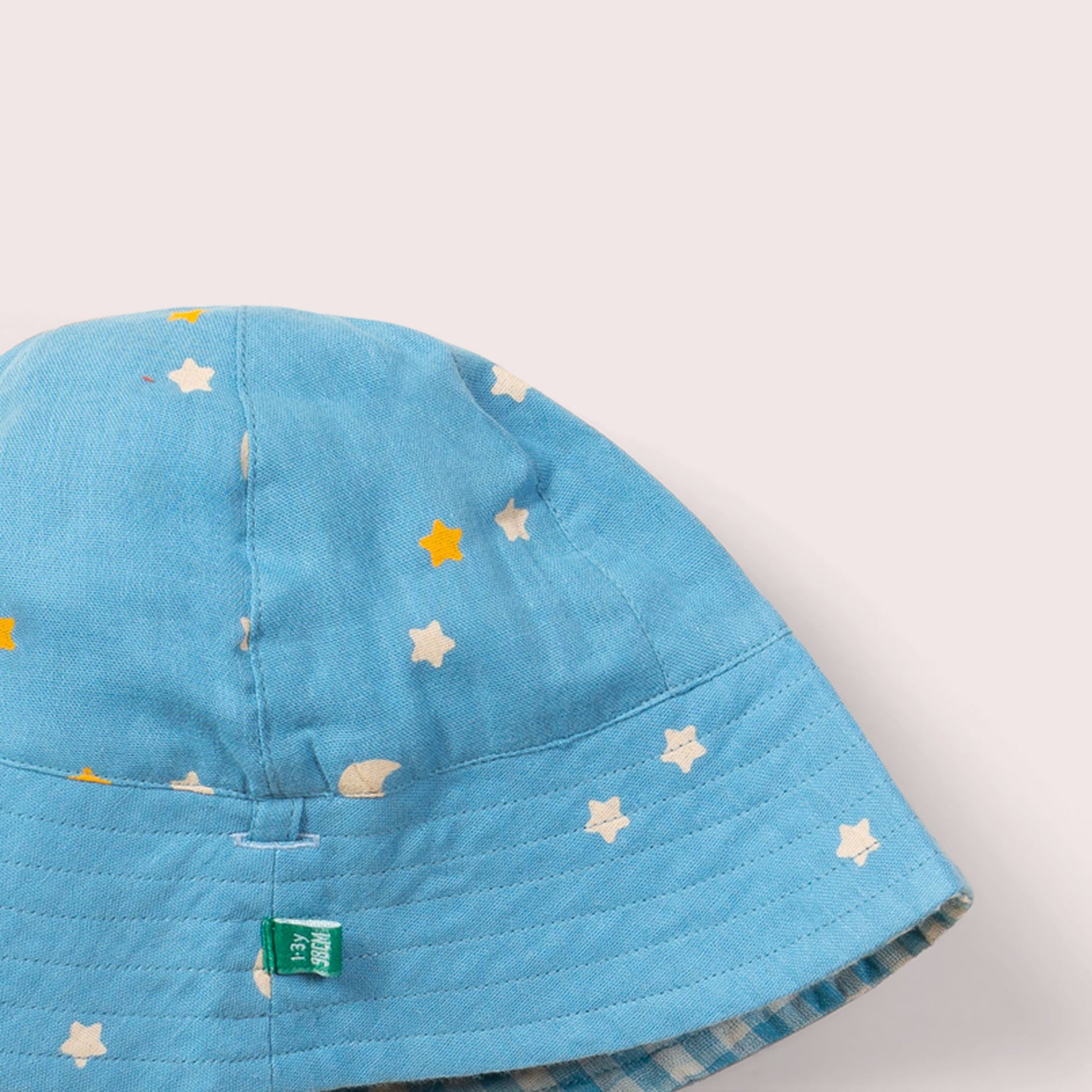Stay out and play all day with this great reversible sunhat! This handy hat will help minimise sun exposure and protect your little one from UV rays. It can be easily folded up when you're out and about, and comes with one plain and one printed design, so you can mix and match with different outfits. They have a wide brim that folds up out of your little ones eyes and a chin strap to keep it secure, however much fun they're having! Take a look at our tops and bottoms for a matching oufit.