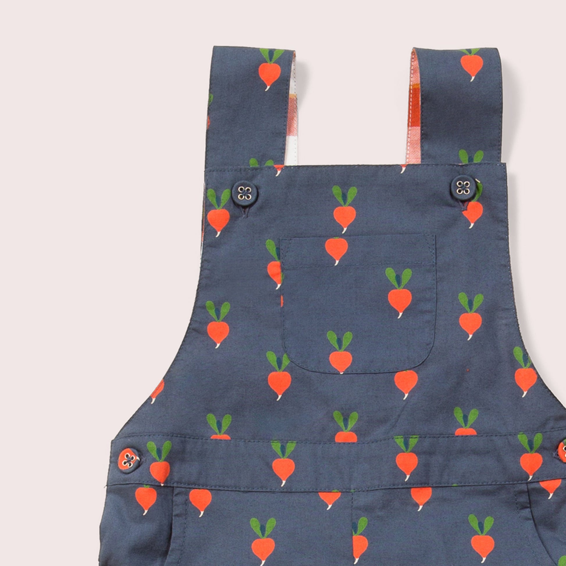 Time for adventure! These summery dungaree shorts are made from breathable organic cotton fabric, perfect for warm weather and come with a little front pocket for hiding tiny treasures. Layer with a soft, organic top on cooler days.
