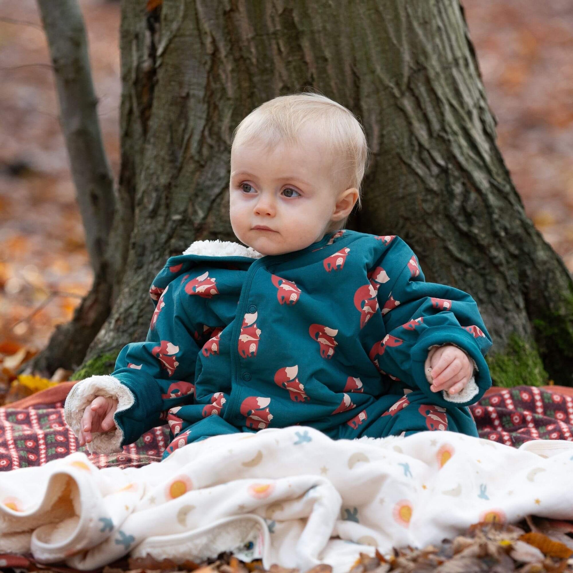 Our snuggly Snowsuits are made using a beautifully soft, breathable organic cotton sherpa lining on one side with a patterned, durable poplin layer on the outside. This is a warm and cosy style that c…