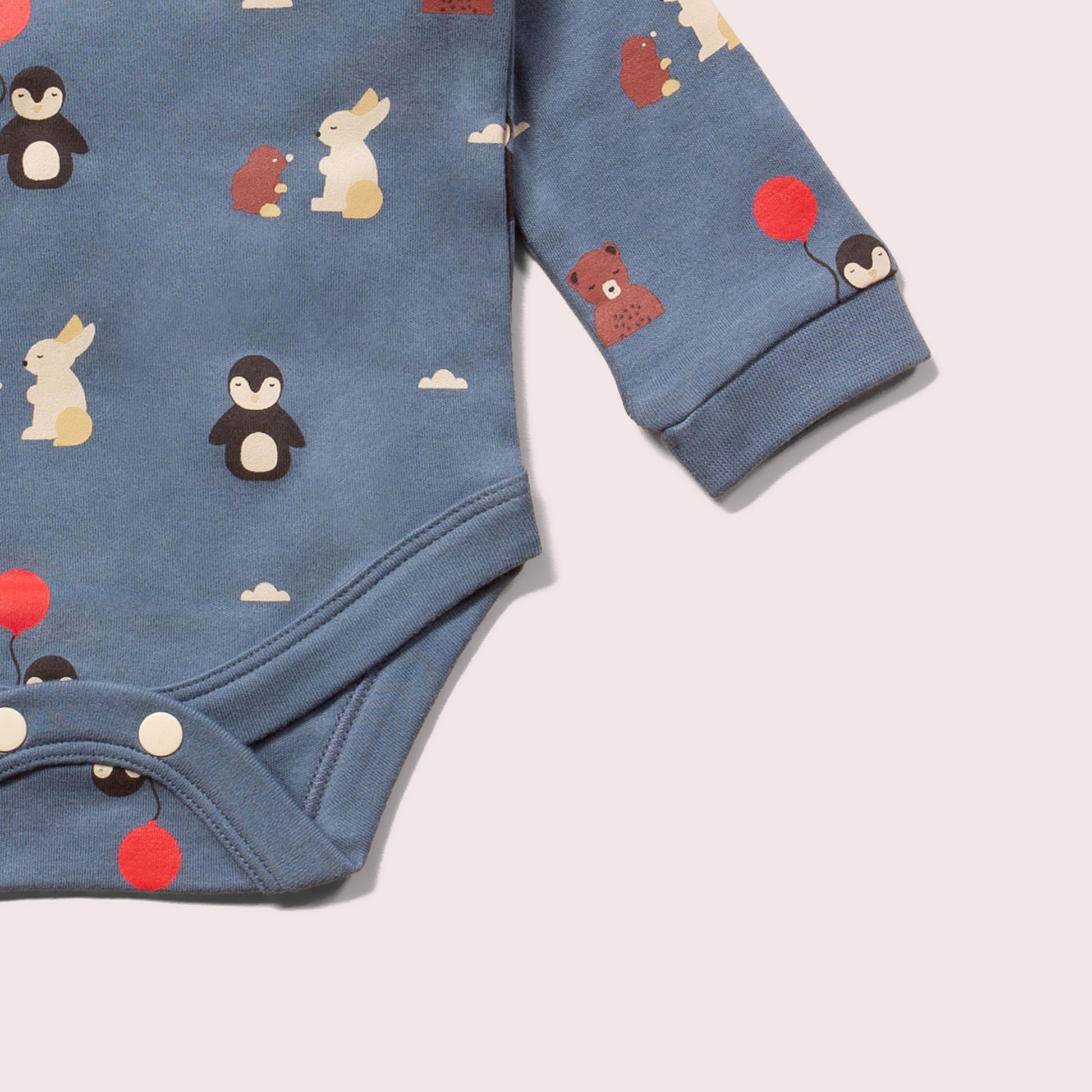 - Nickel-free poppers at leg openings for easy nappy changing