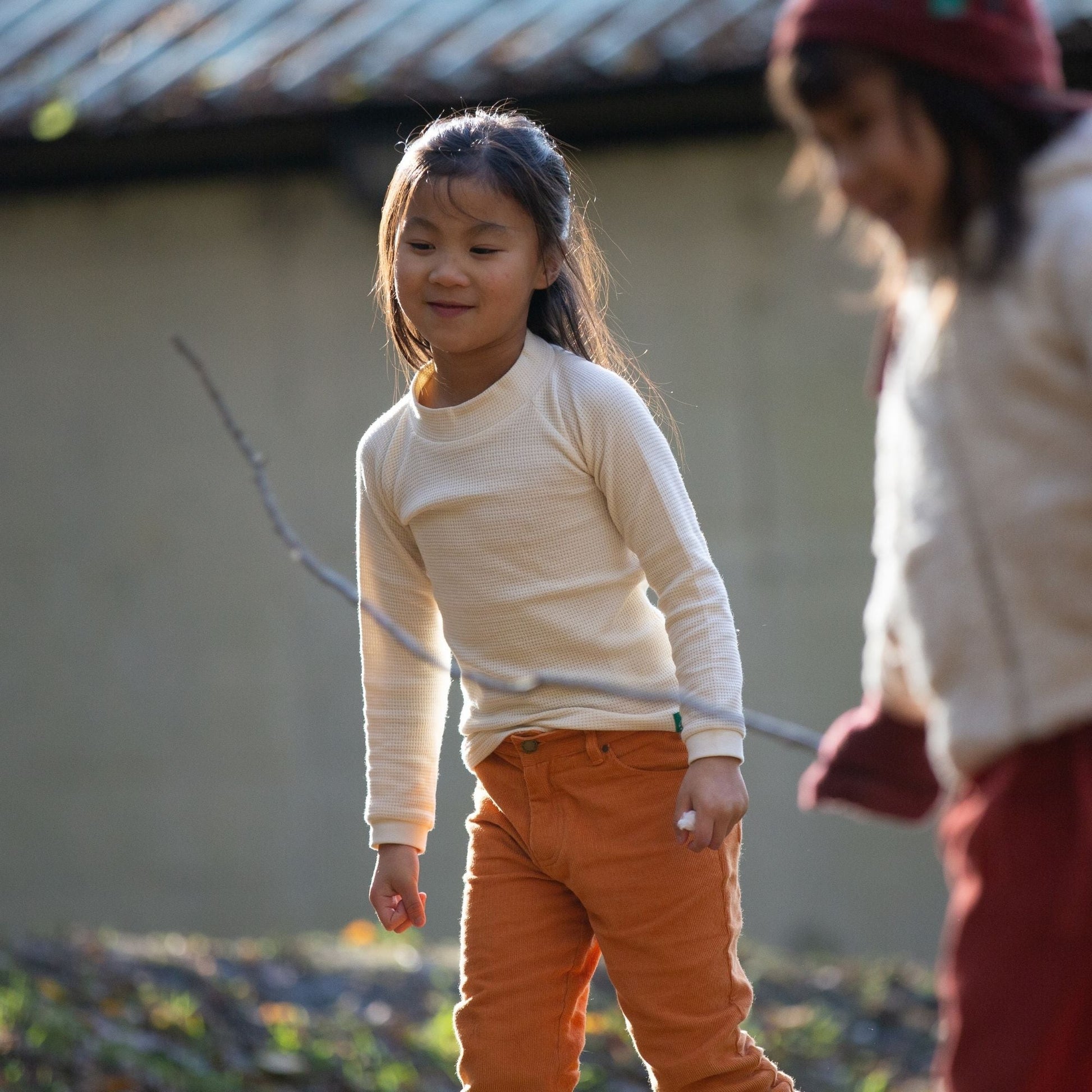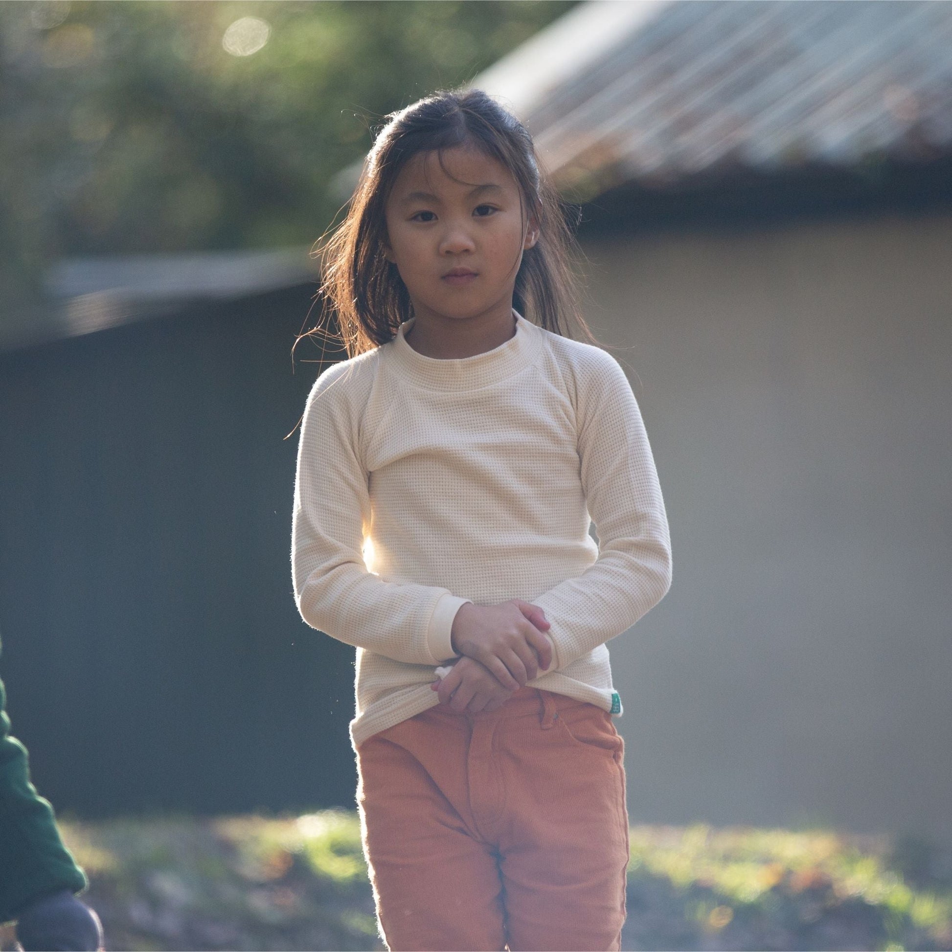 A new addition for our organic waffle collection, this long sleeve top has a higher neck than our standard tees making it extra cosy to wear. It's the perfect layer to match with dungarees, dresses and to stay snug under warm knits on colder days.