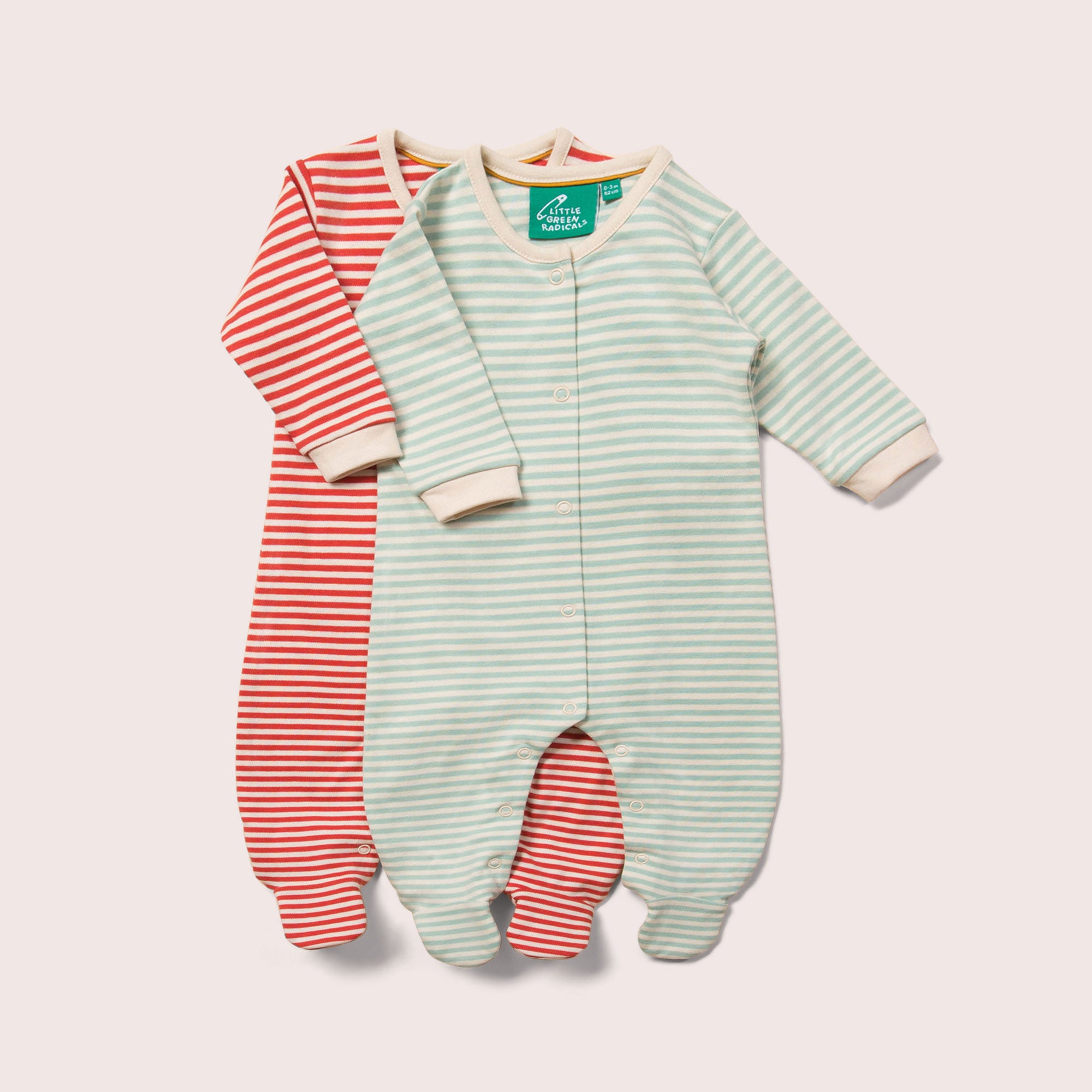 Red & Blue Striped Organic Babygrow Set - 2 Pack