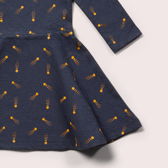 Find out more about our Shooting Stars Long Sleeve Spinny Dress This is a super comfy dress made for everyday play, with a wide circular skirt perfect for twirling, jumping and climbing! Extra Detai…