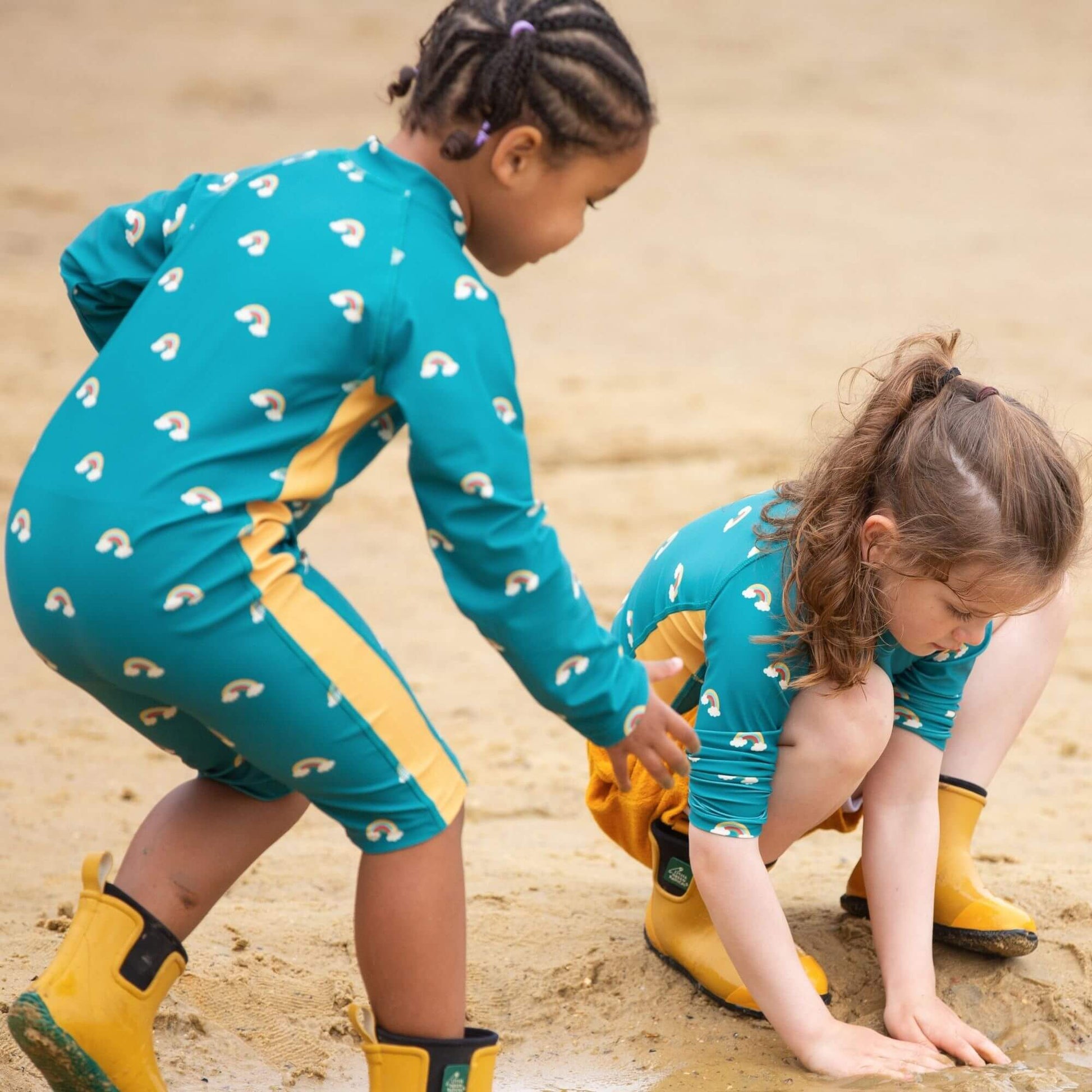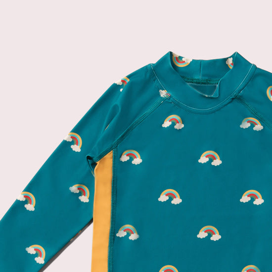 More about our Teal Rainbows UPF 50 Sun Safe Long Sleeve Rash Vest Splash into summer with our recycled swimwear! This long sleeve pull-on rash vest is soft and stretchy with flat seams for extra comf…