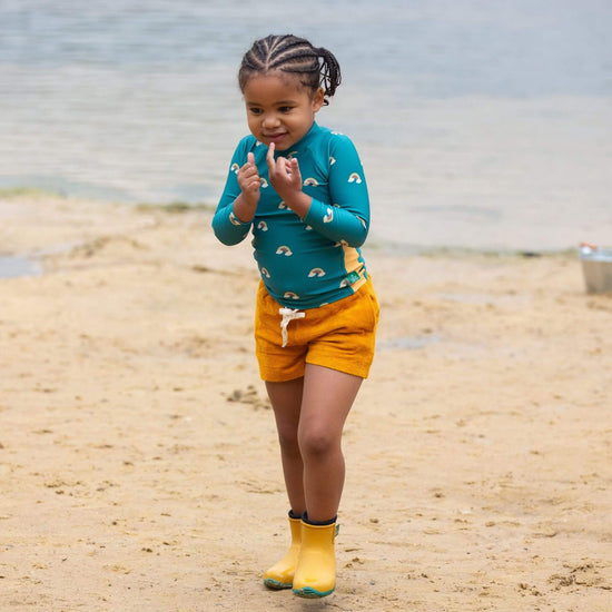 Splash into summer with our recycled swimwear! This long sleeve pull-on rash vest is soft and stretchy with flat seams for extra comfort, plus has UPF 50+ sun protection to keep them safe in the sunshine. Pair with our swim nappies, swimsuit or swim shorts and jump in!