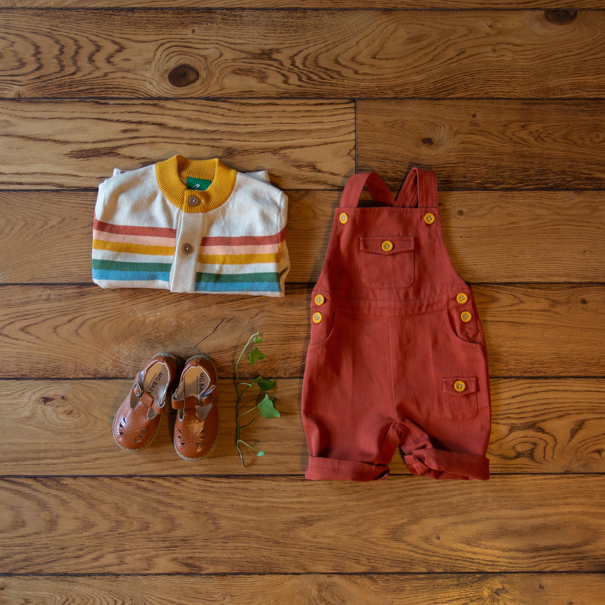 More about our Walnut Pocket Dungaree Shorts Time for adventure! These summery dungaree shorts are made from robust twill fabric, perfect for little explorers. Layer with a soft, organic top on cooler…