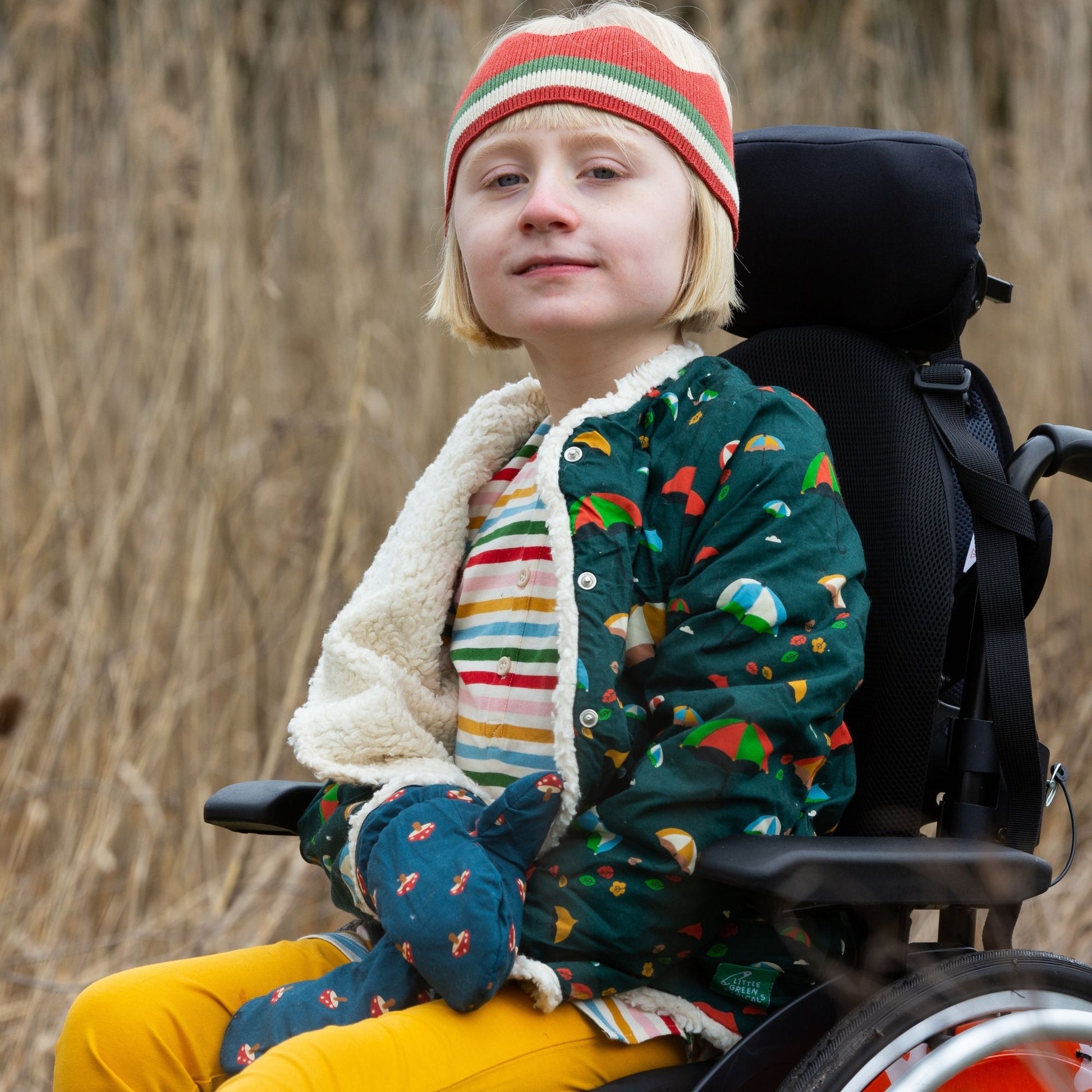 - Soft, organic cotton knitted fabric that stretches to fit your child