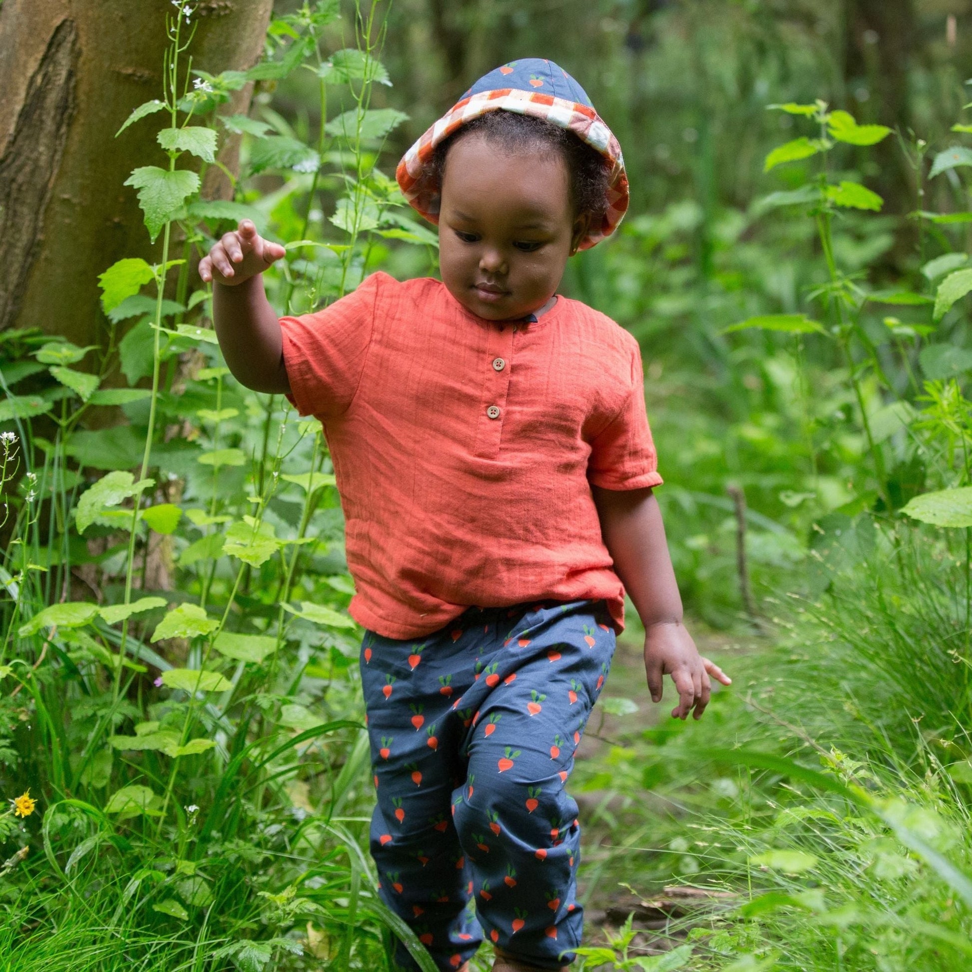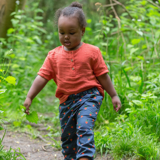 These summer trousers are sized generously, with lots of wriggle room for little explorers, plus an elasticated waistband for extra comfort. Match with an organic t-shirt for a comfy summer outfit.