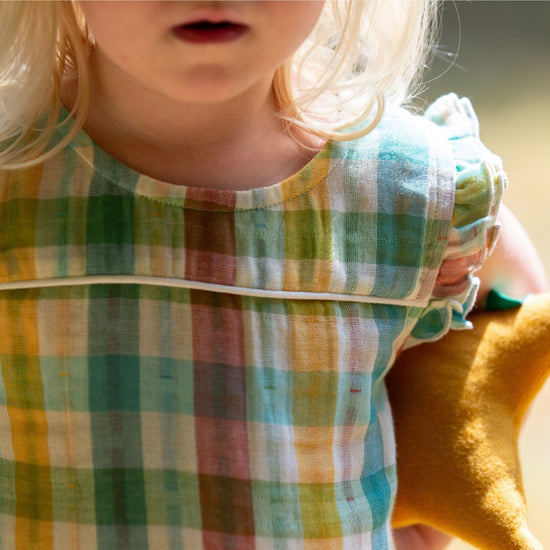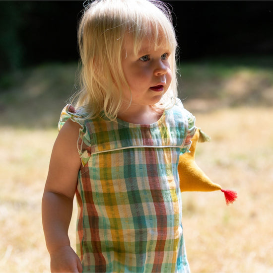 Pop on this one-piece romper and they're ready to go! The sleeveless all-in-one design and light, breathable fabric will keep them cool and comfy all summer long. Wear on its own, or add an organic cotton layer underneath on cooler days.