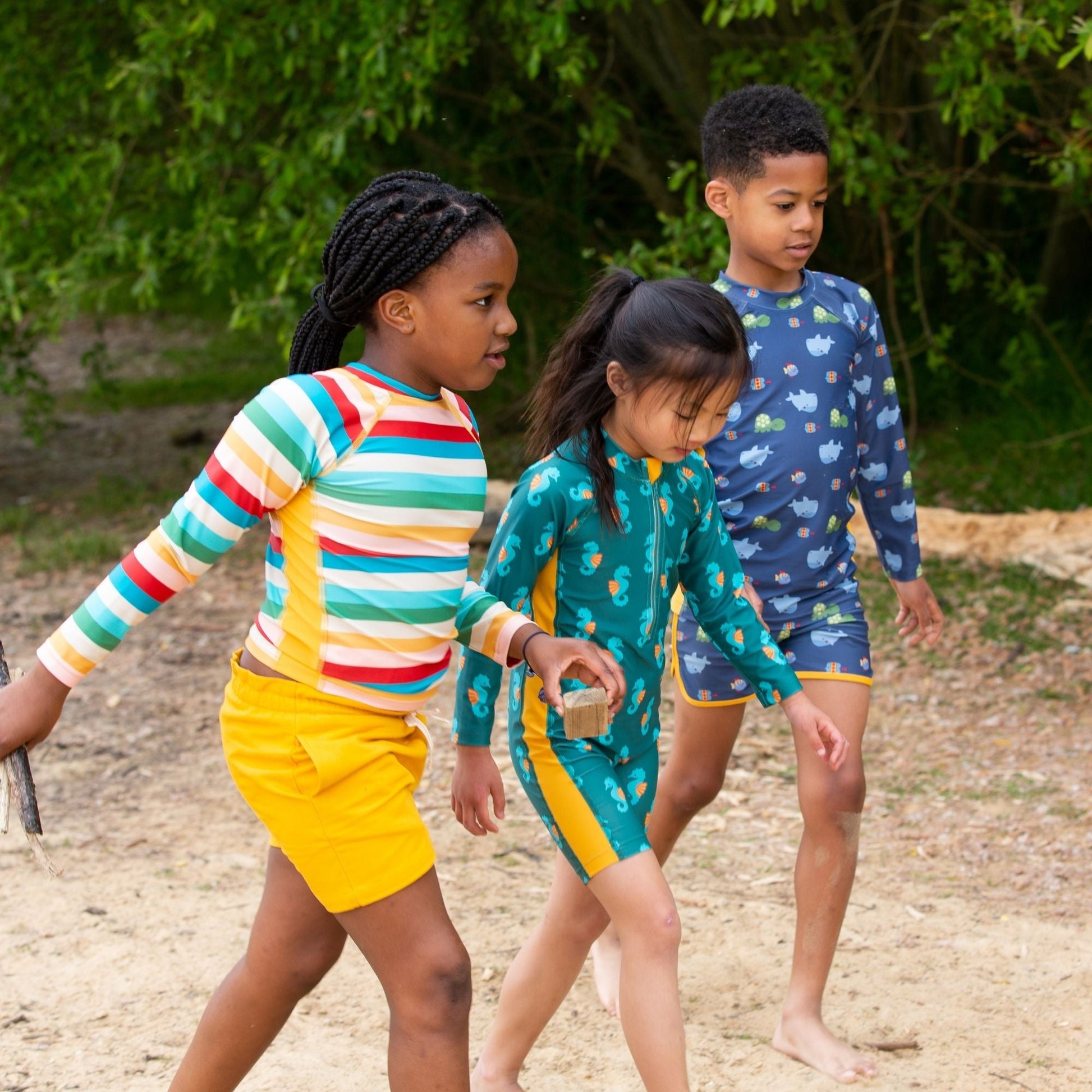 Splash into summer with our new swimwear collection made from recycled materials! This long sleeve pull-on rash vest is soft and stretchy with flat seams for extra comfort, plus has UPF 50+ sun protection to keep them safe in the sunshine. Pair with our swim nappies, swimsuit or swim shorts and jump in!