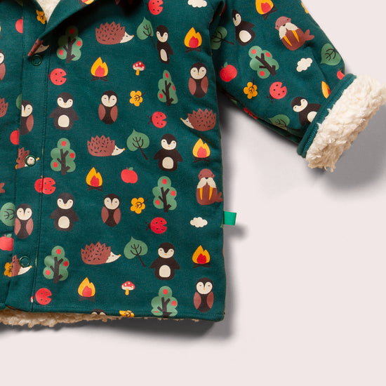 More about our Woodland Walk Reversible Sherpa Jacket This cosy jacket will keep kids warm when they're out adventuring on cold and windy days. It's reversible (2 styles in 1!) and comes with soft org…