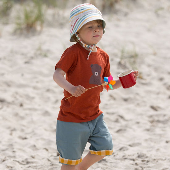 Beautifully soft and comfy to wear, this might just be their new favourite t-shirt! It comes with a colourful print they'll love to wear, poppers on one shoulder for fuss-free dressing and is made from light and breathable organic cotton fabric that will keep them cool all summer long. Pair with our shorts for an adventure-ready outfit.