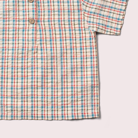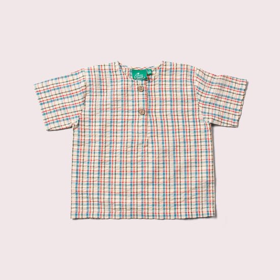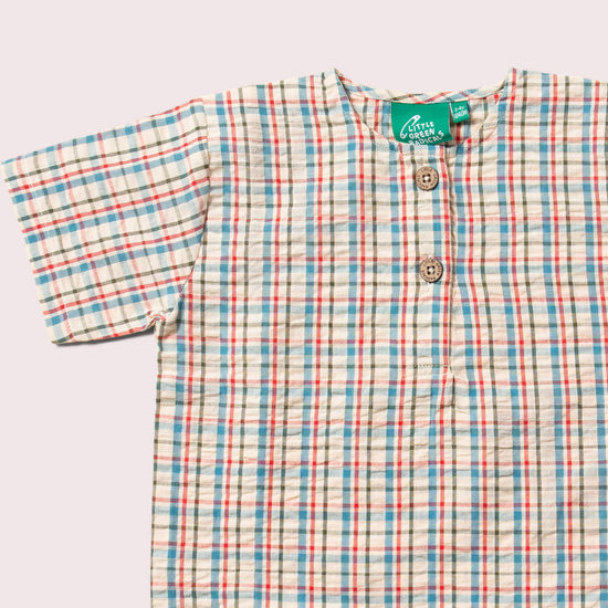More about our Checked Seersucker Loose Short Sleeve Henley Top A lovely, loose fitting top for hot summer days made from breathable organic cotton fabric. Extra Details: - 100% Organic Fairtrade Seer…