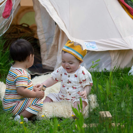 This lovely summery romper comes with short sleeves and cropped legs, perfect for warmer weather. It's made from 100% organic cotton that will feel beautifully soft against your child's skin. We've left some extra room for cloth covered nappies, and used nickel-free poppers on the legs for fuss free nappy changes.