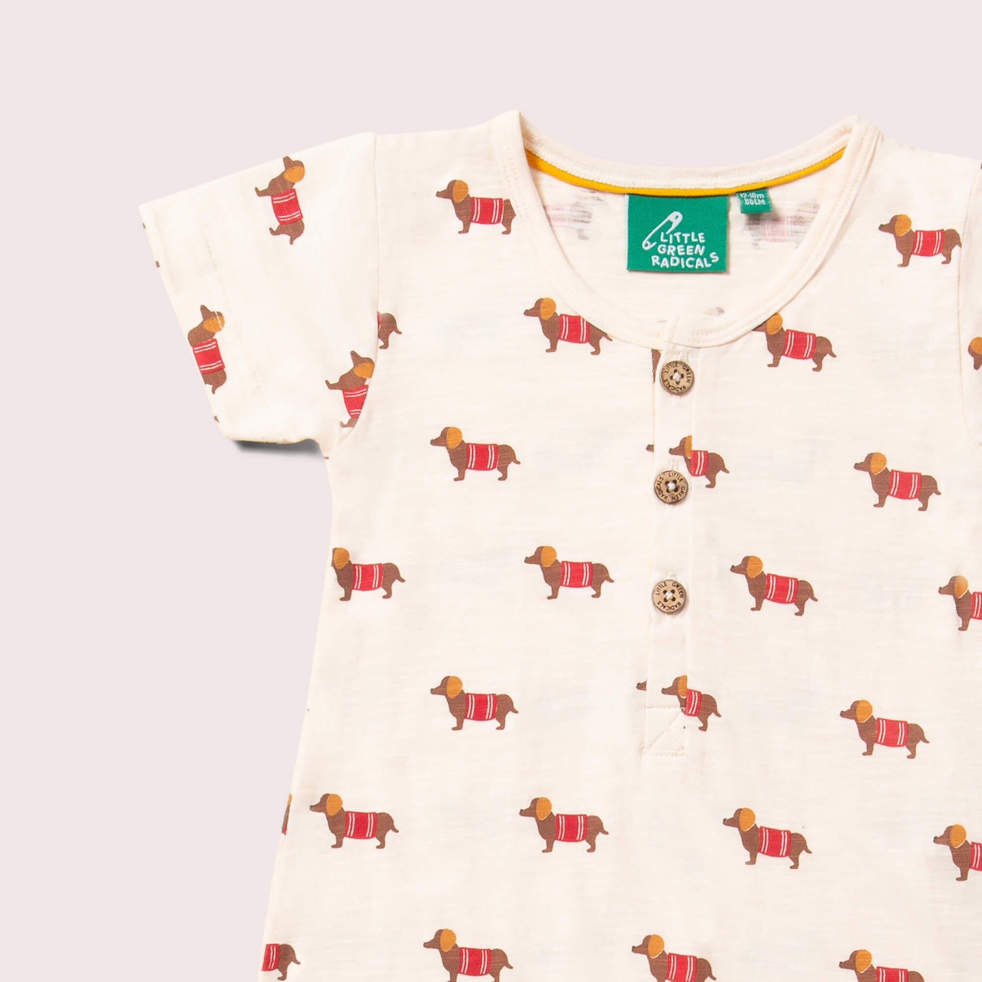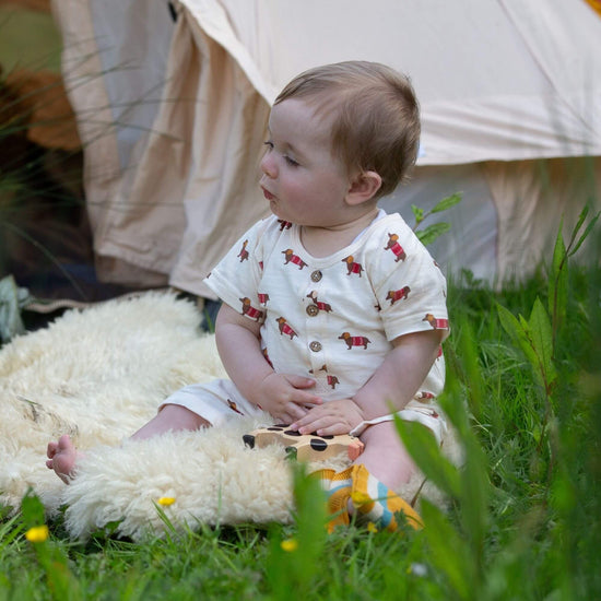 More about our Cream Sausage Dogs Organic Summer Romper