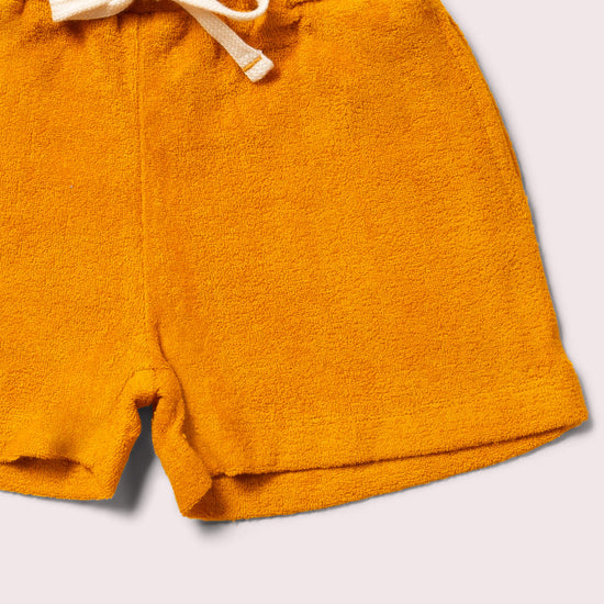 More about our Gold Towelling Shorts Down to the beach we go! Made from soft organic cotton towelling fabric, these comfy shorts are a great style for fun in the sun. Pop on a t-shirt and they're read…