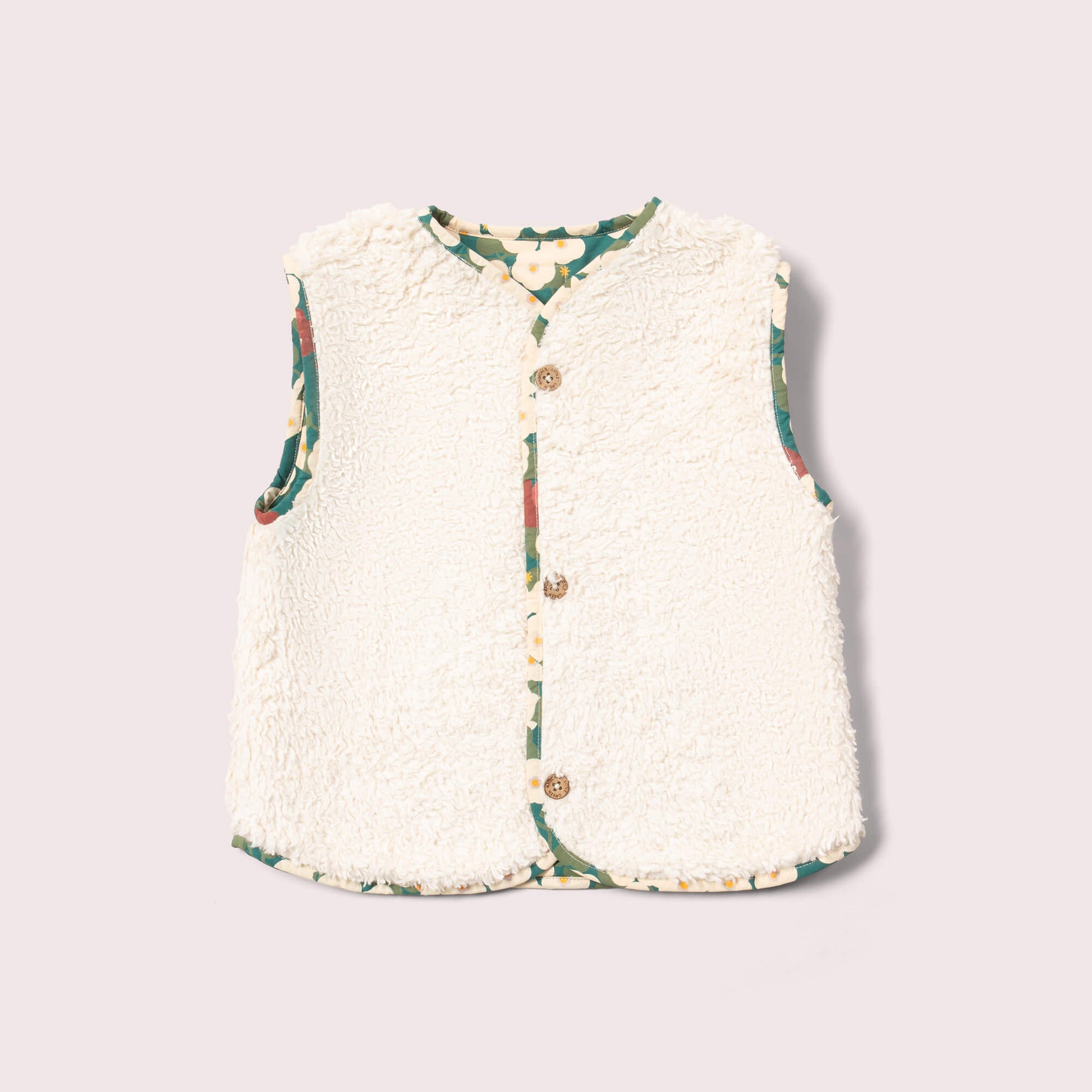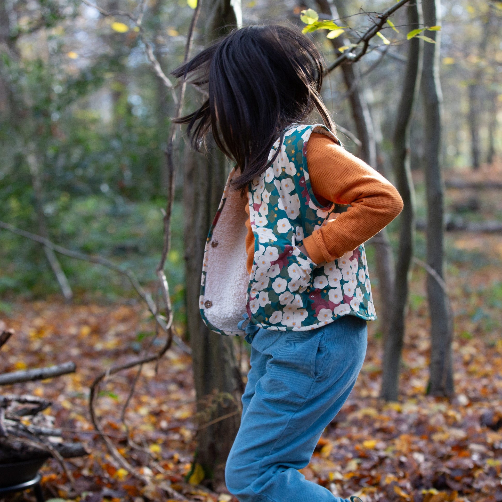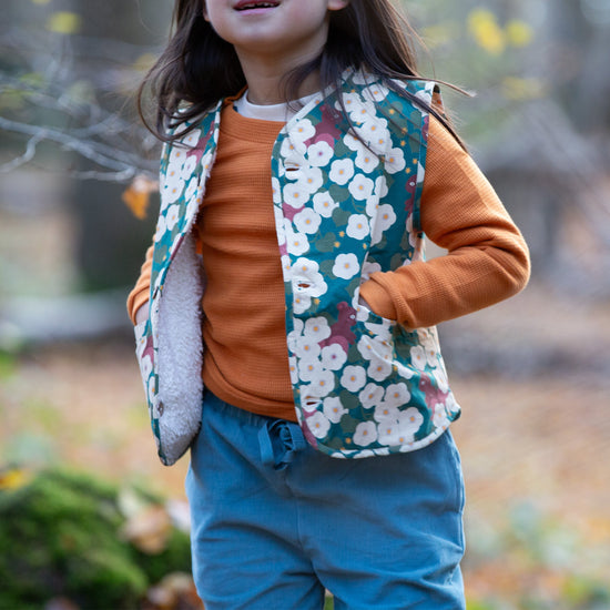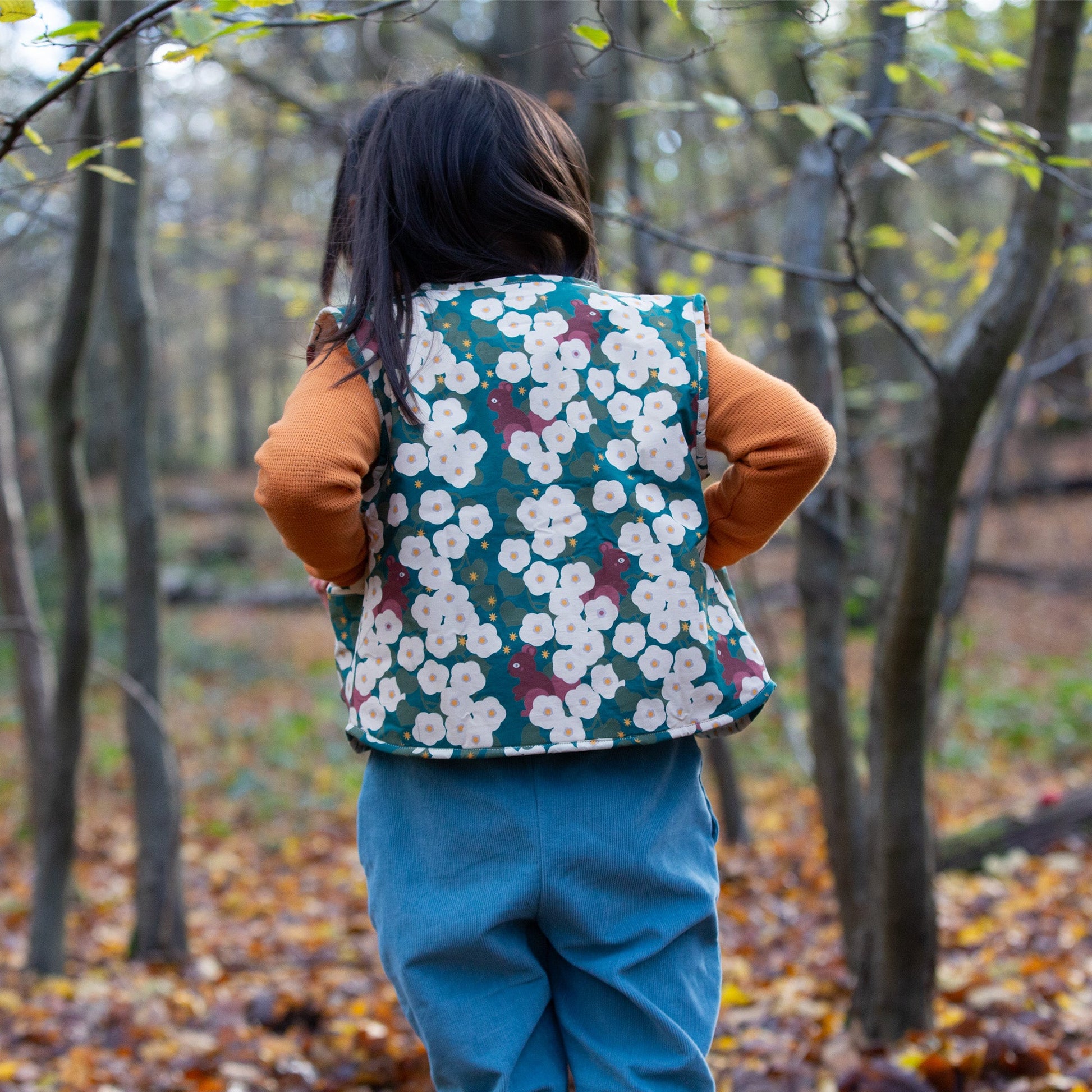 On cold days when you need an extra warm layer this cosy organic cotton gilet is just what you're looking for! The reversible design means you get two styles in one, each side as lovely as the other.