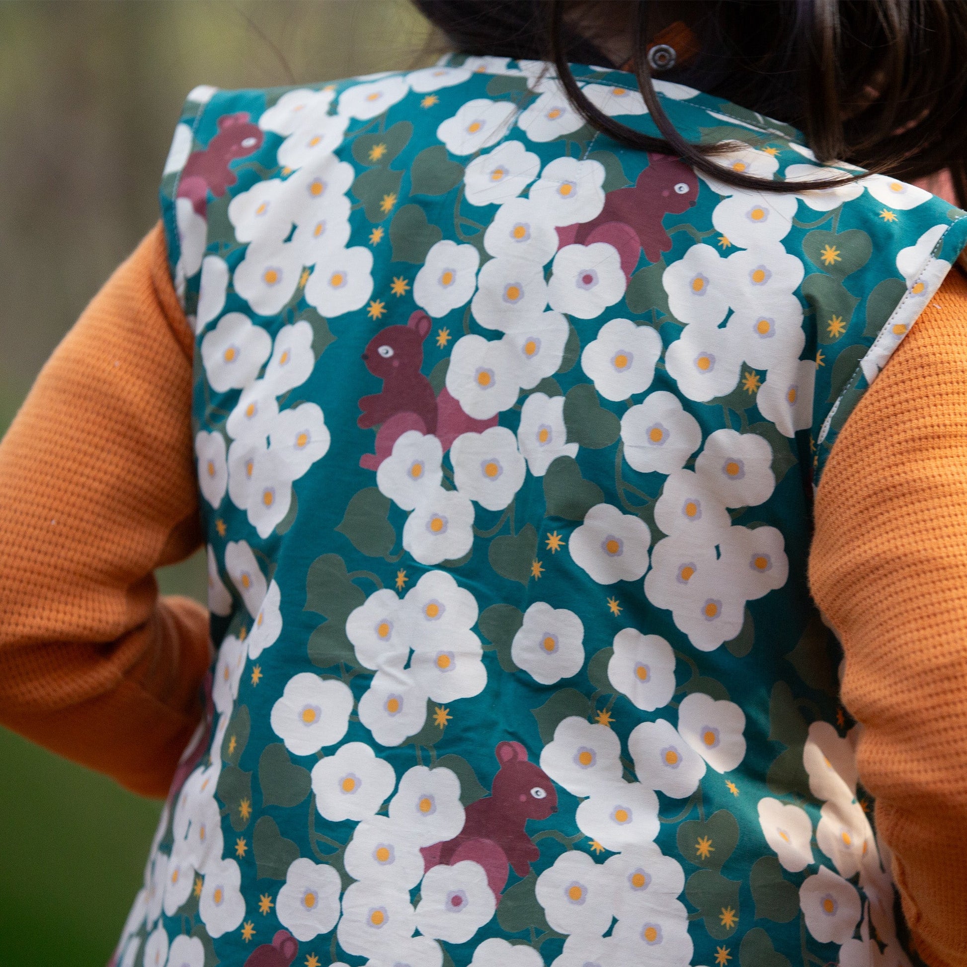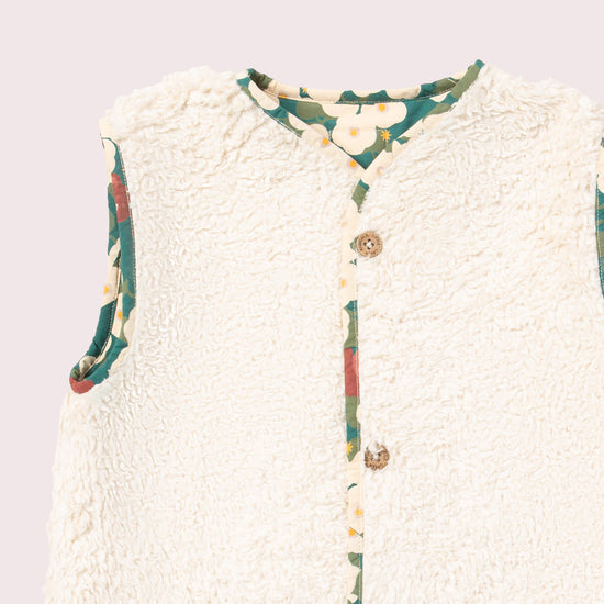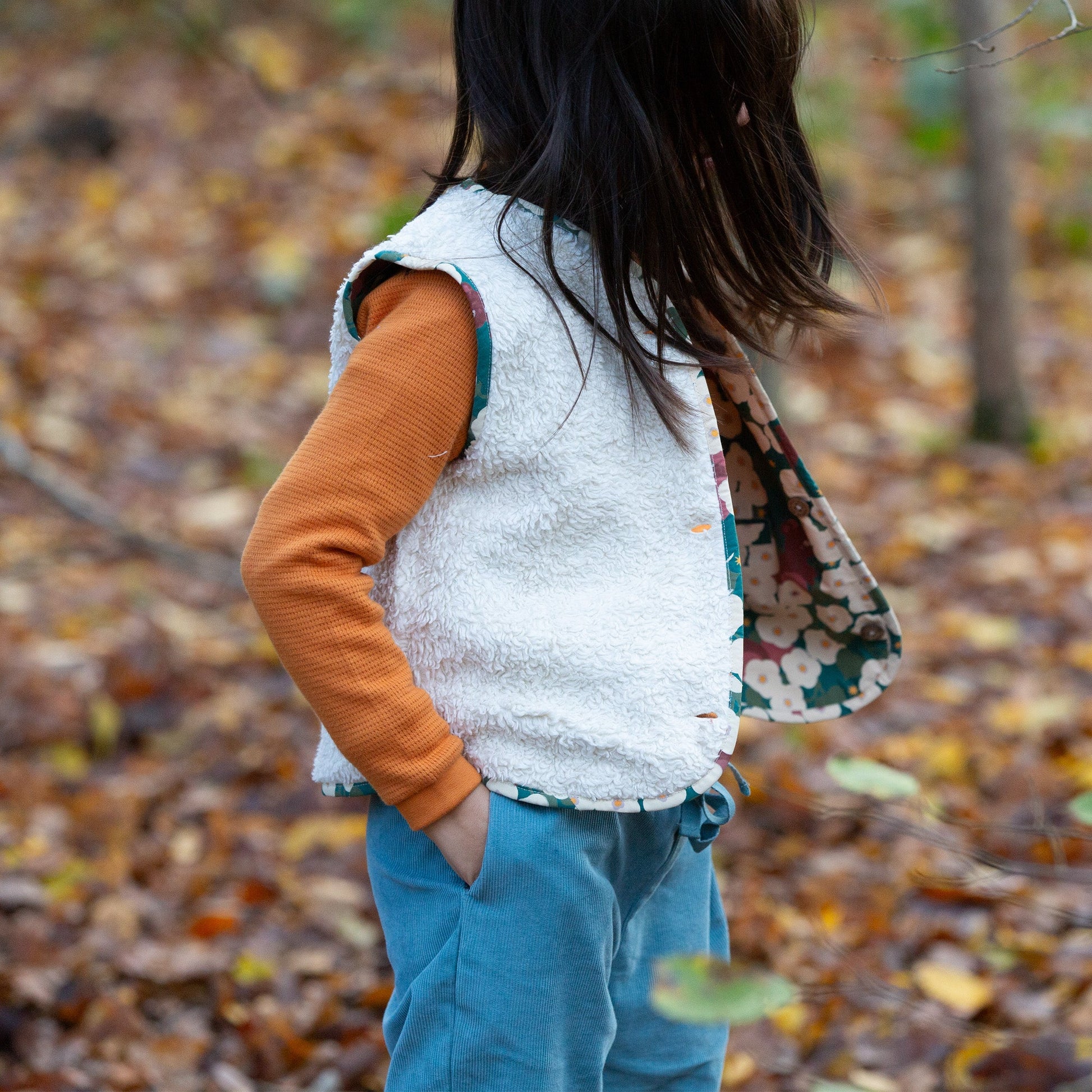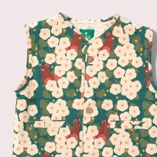 On cold days when you need an extra warm layer this cosy organic cotton gilet is just what you're looking for! The reversible design means you get two styles in one, each side as lovely as the other.