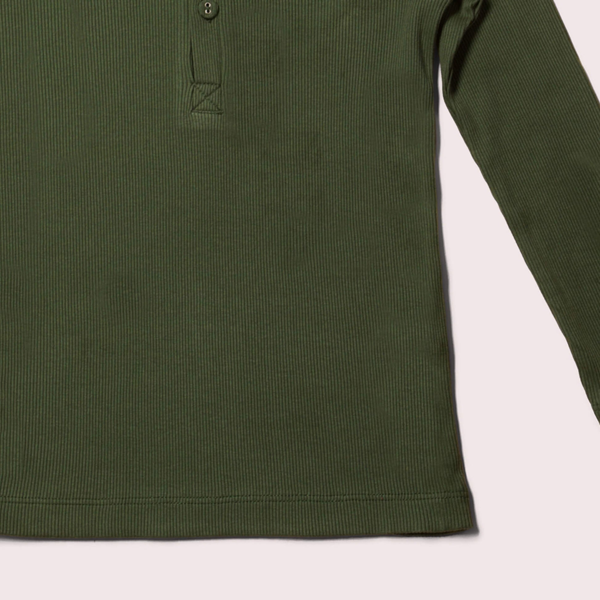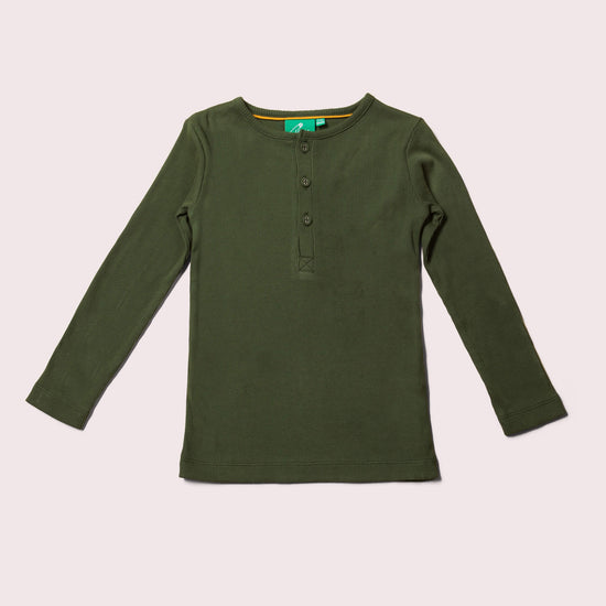 Olive Ribbed Long Sleeve Henley Top