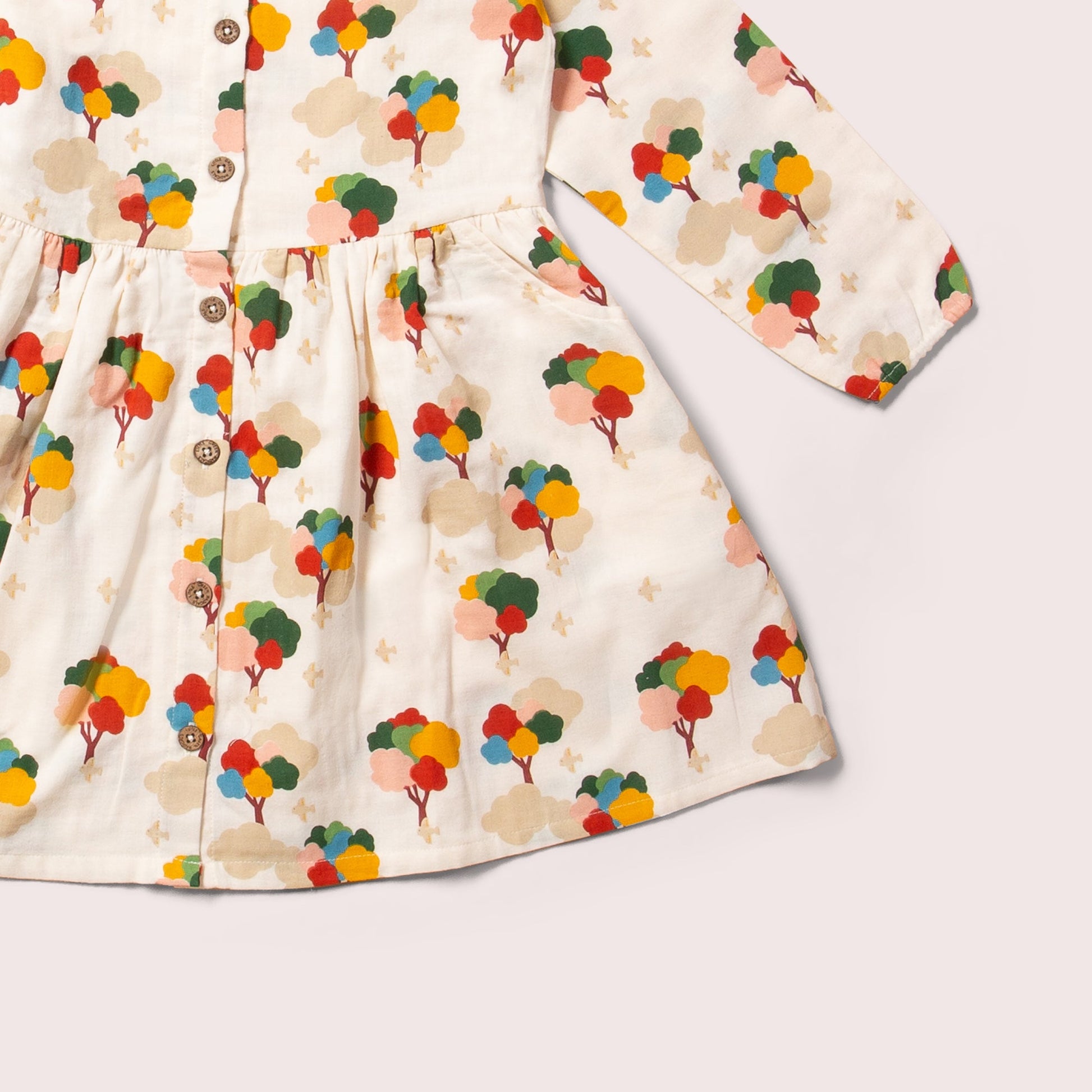 More about our Rainbow Trees Comfy Pocket Dress Comfy dress for play, everyday! Comes with buttons down the front for easy dressing and a wide fitting skirt to give lots of room for movement. Extra De…