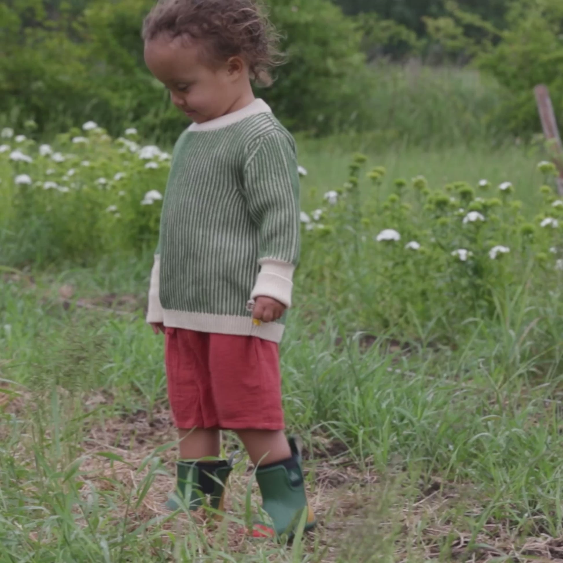 Inspired by traditional hand knitted jumpers, this classic knit is designed to be passed along from one child to another. This lovely layering style is made from super soft organic cotton that will keep little ones warm on cool summer nights and breezy spring days.