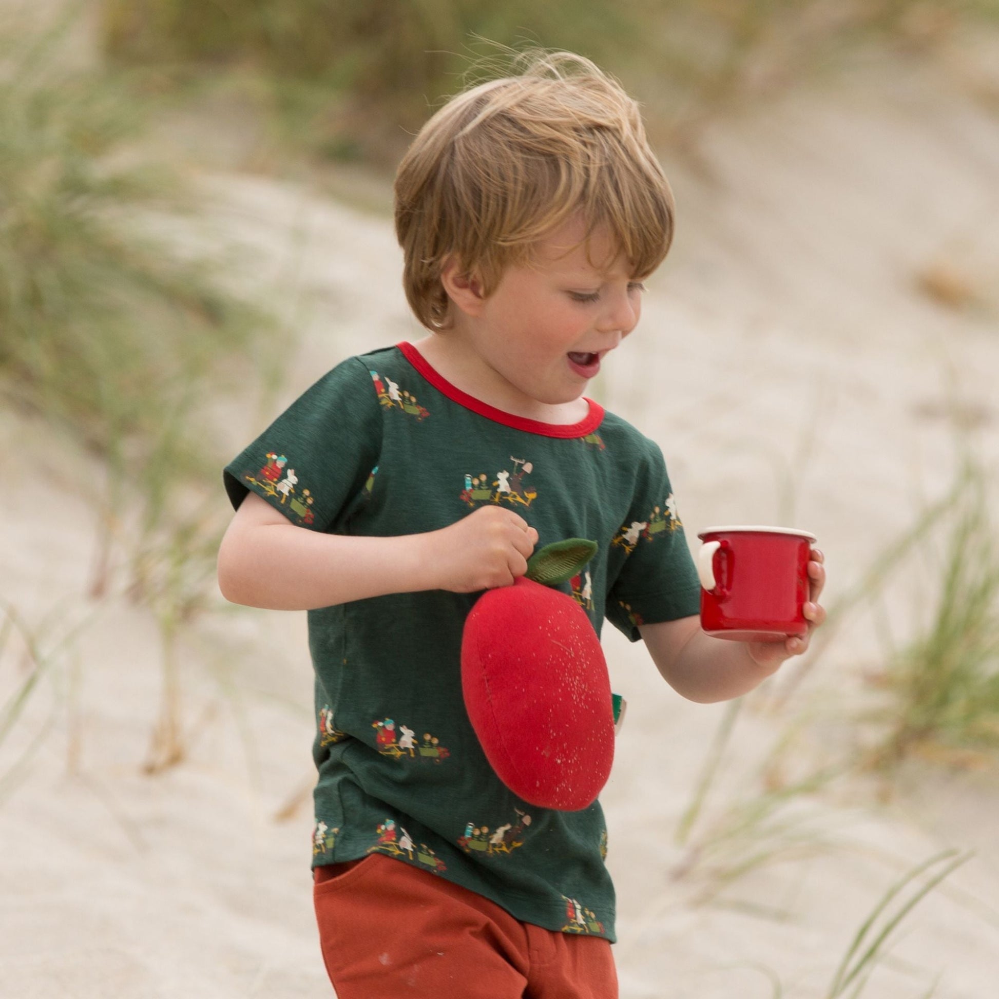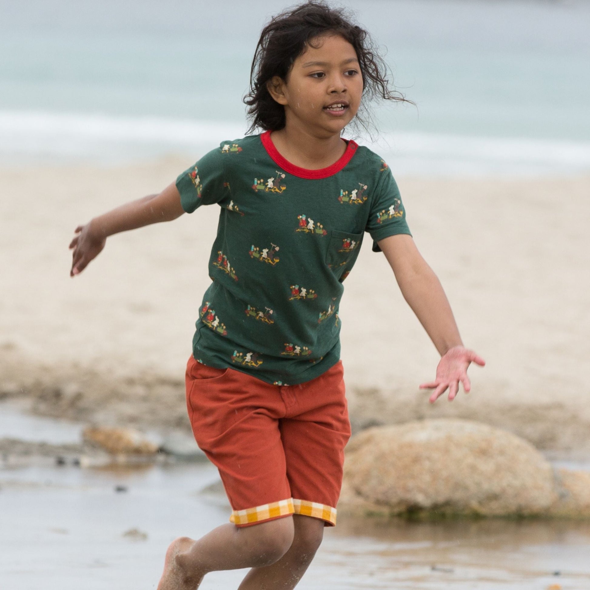 Beautifully soft and comfy to wear, this might just be their new favourite t-shirt! It comes with a colourful print they'll love to wear, poppers on one shoulder for fuss-free dressing and is made from light and breathable organic cotton fabric that will keep them cool all summer long. Pair with our shorts for an adventure-ready outfit.