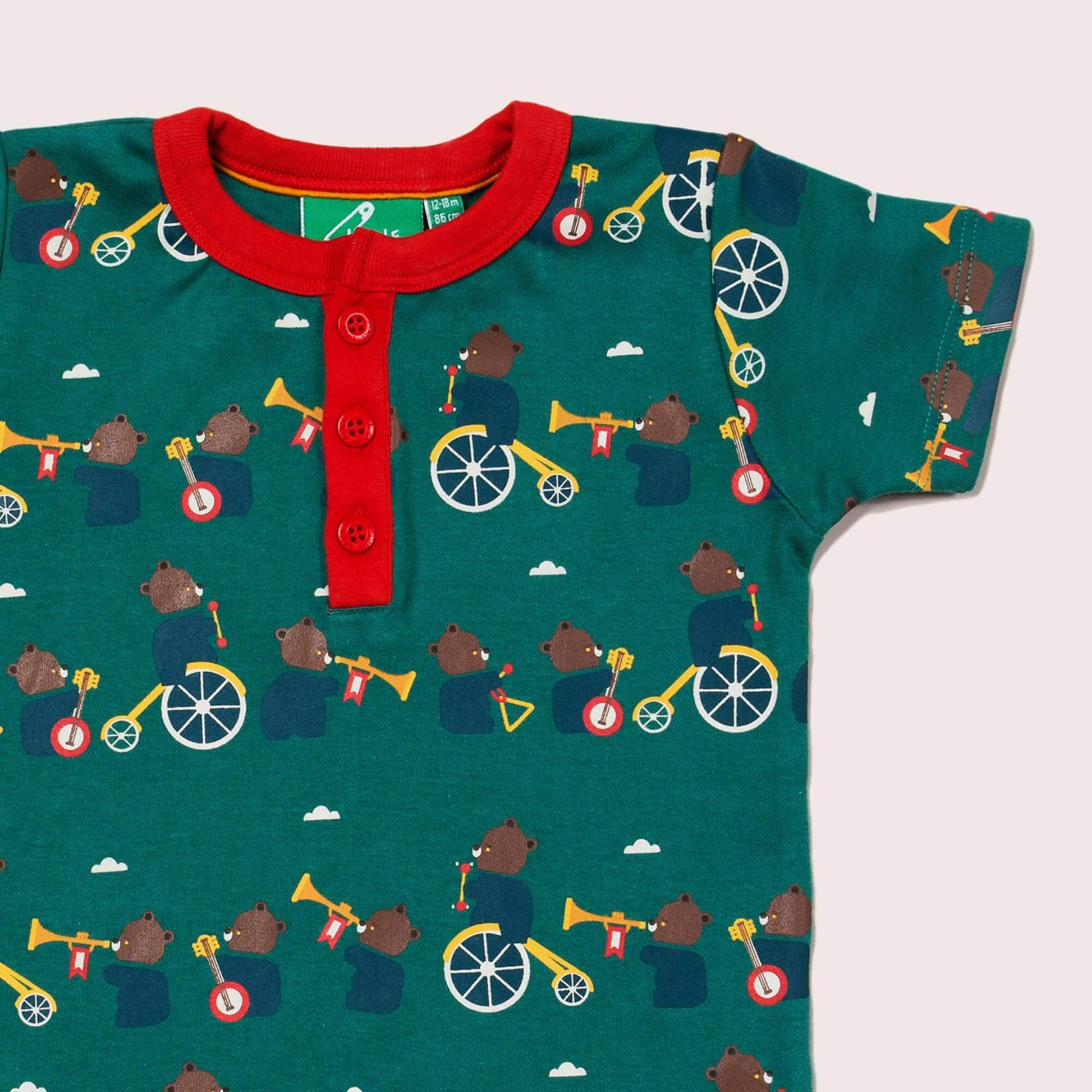 Beautifully soft and comfy to wear, this might just be their new favourite t-shirt! It comes with a button-down front for fuss-free dressing, a fun bear band print that both boys and girls will love, and is made from light and breathable organic cotton fabric that will keep them comfy whilst they play. Pair with our joggers for a spring outfit.