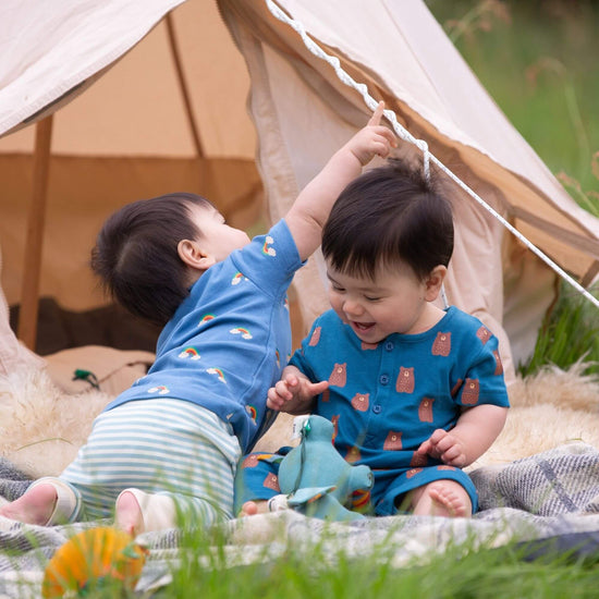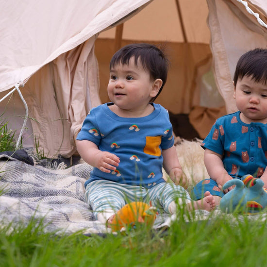 More about our Blue Rainbows Organic T Shirt & Jogger PlaysetDesigned for active little ones this comfy, versatile set is made for everyday play indoors or out; at nursery, at home, playing outsid…